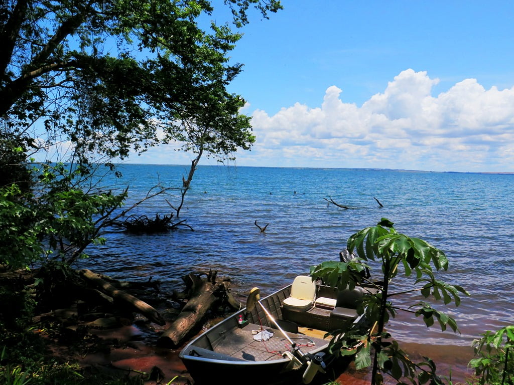 No domingo (17/11), acordamos cedinho na pousada e passamos em Presidente Epitácio/SP, que fica bem no caminho de volta, para um dia de pesca com o guia Valdivino. O dia começou com bastante vento como os outros anteriores. Começamos o dia com peixes menores: