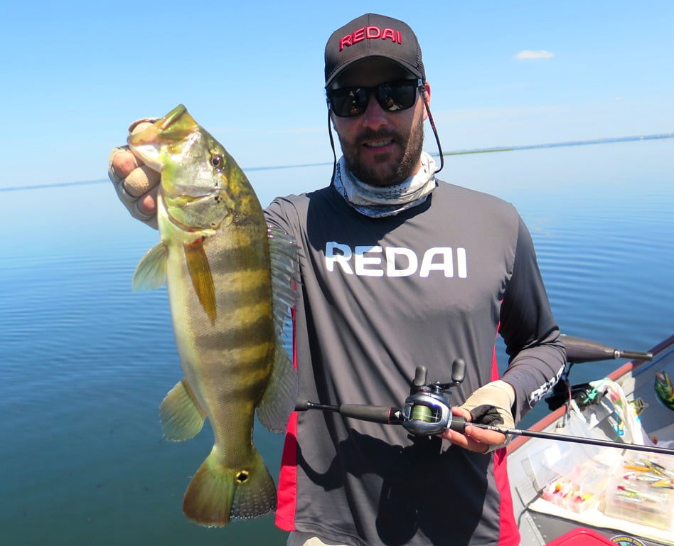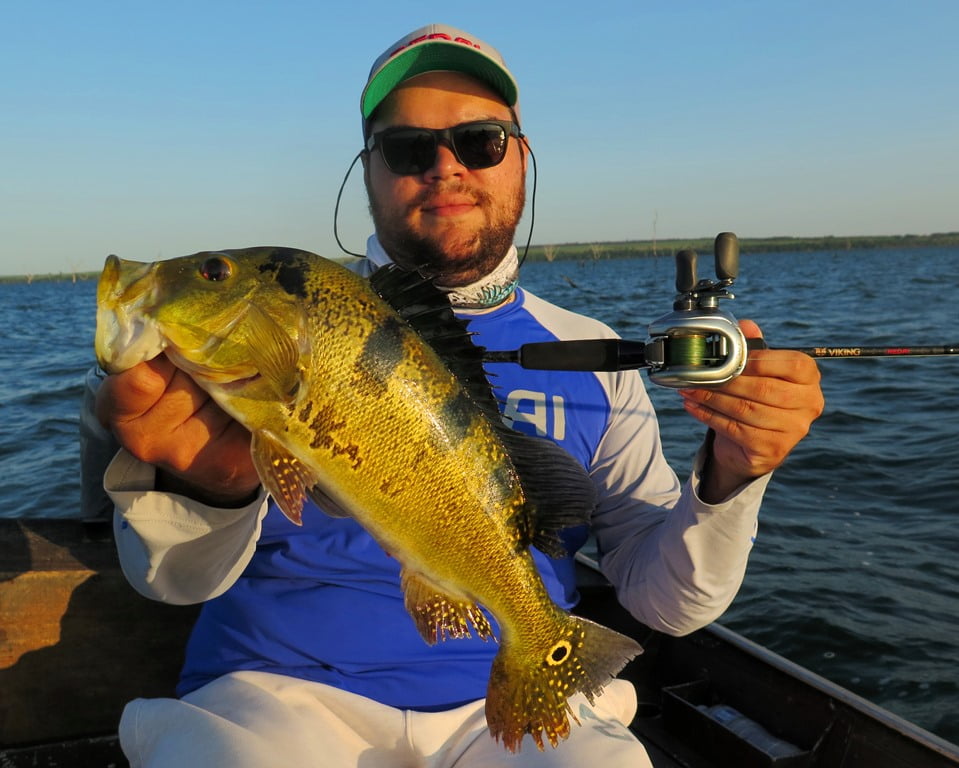 De manhã não vimos a cara de nenhum tucunaré azul, somente amarelos, e poucos: