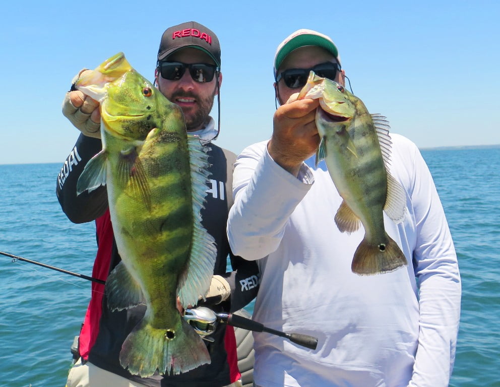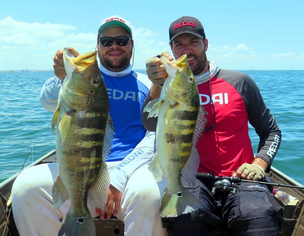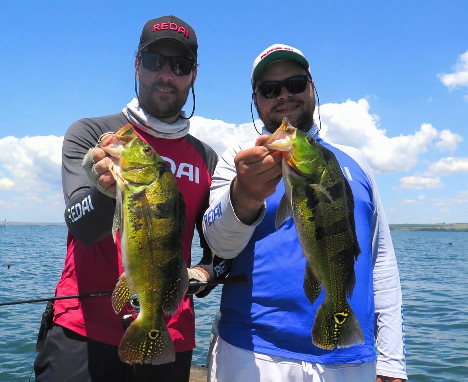 Iscas: Desta vez, com muito vento e peixe nos locais fundos, as iscas de barbelas fizeram a diferença. Vision +1, R2, X-80 Magnum, Fusion Shad 75.