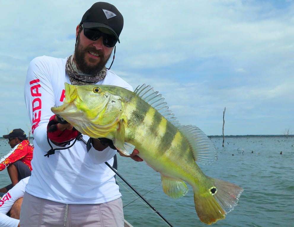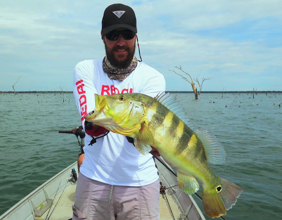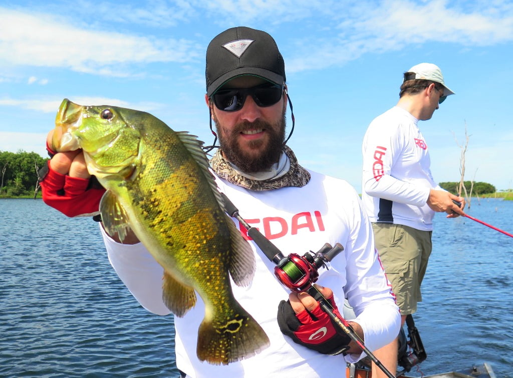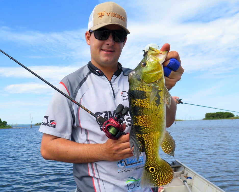 Os tucunarés azuis ficaram enlouquecidos! Pancada para todo lado. Newton acertou até na isca de hélice: