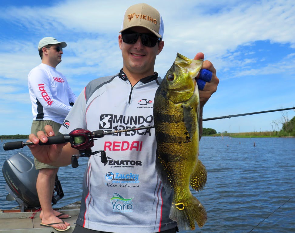 E o Newton acertou também um belo tucunaré azul, que o convenceu a sair na foto: