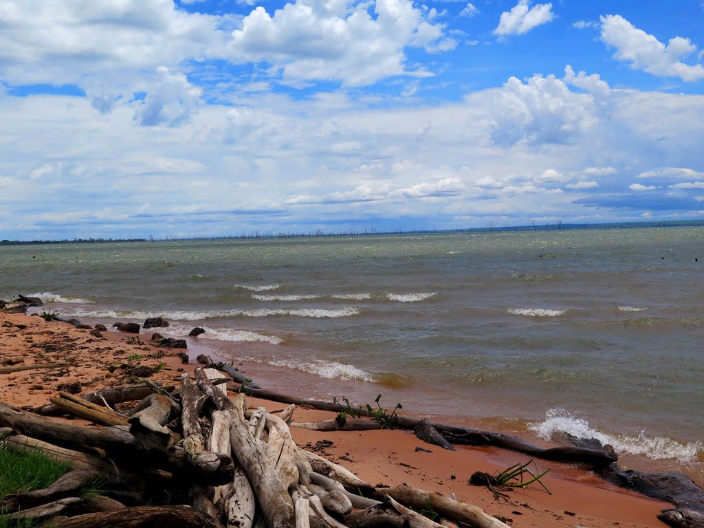 Paramos para almoçar um churrasco no barranco e o vento aumentou demais! Muita marola: