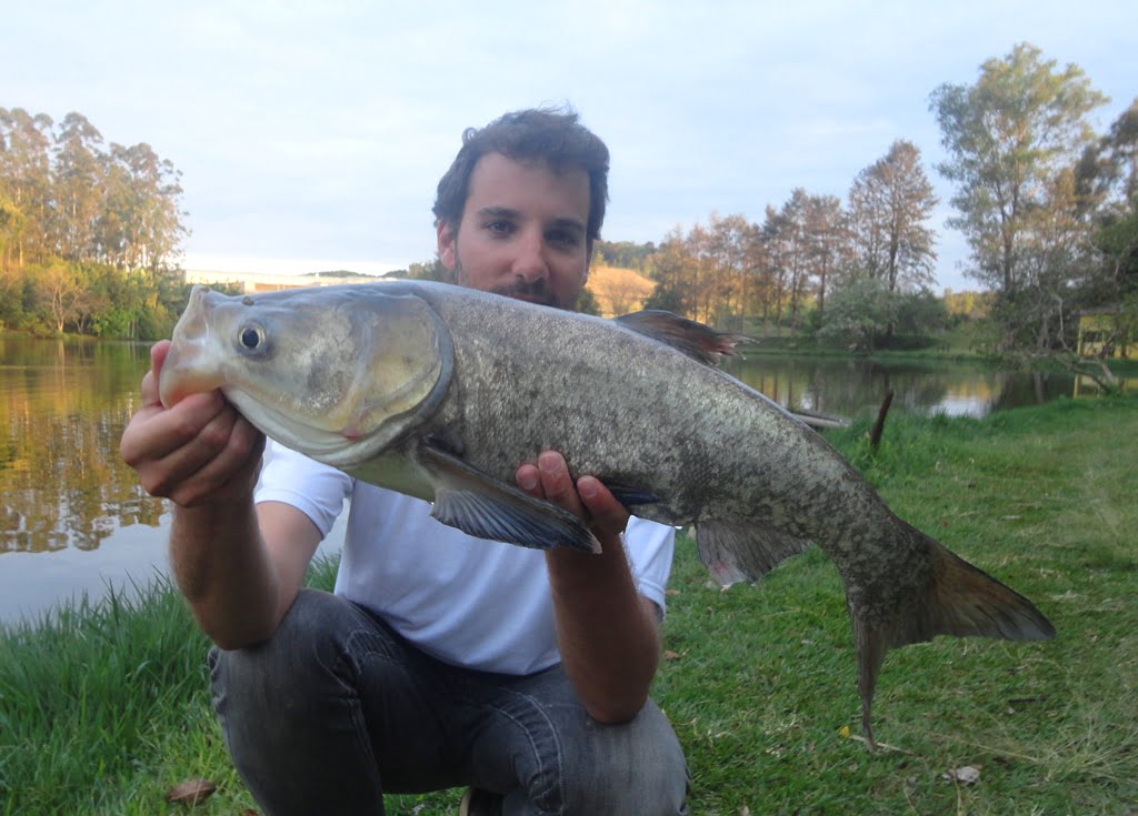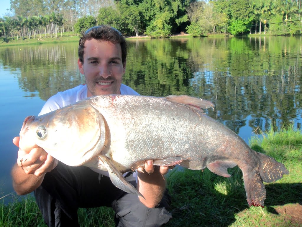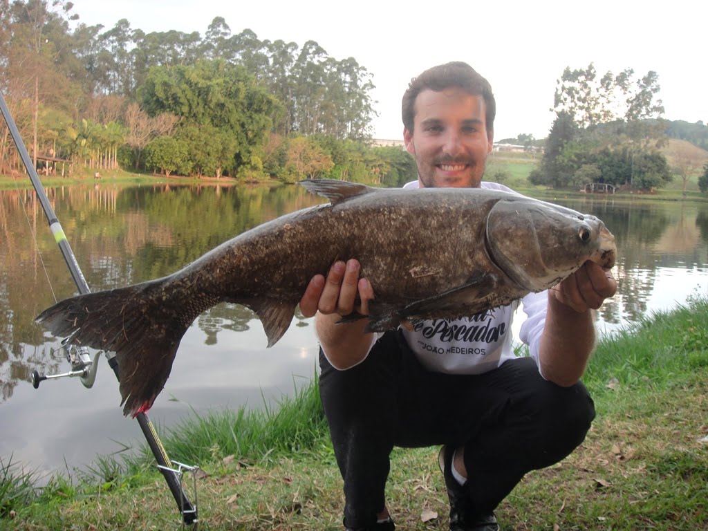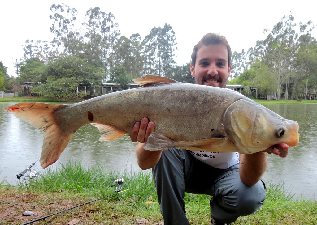 Fala pessoal, desta pescaria eu não participei, foi o meu irmão Pedro que passou uma tarde no Pesqueiro Toca do Jacaré, no dia 09/07/2014, e mesmo com frio e chuva, foi para pescar exclusivamente CARPAS CABEÇUDAS.