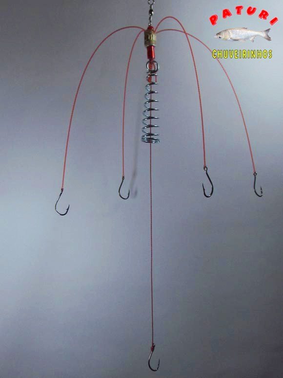 – Colocar a massa com a mola no meio para segurar a massa, enterrar os anzóis laterias na massa, e deixar livre o anzol de baixo, pois como a carpa não come nada sólido, ela virá ”mamar” e filtrar a água que contém os farelos da massa, até ser fisgada em uma de suas ”sugadas”.