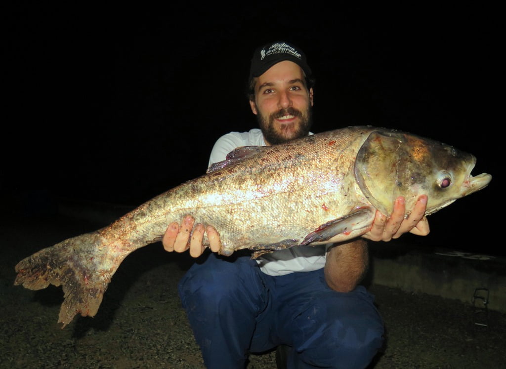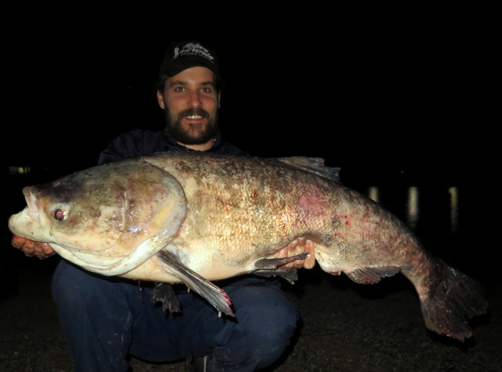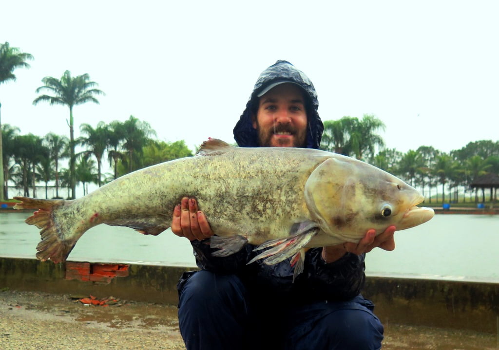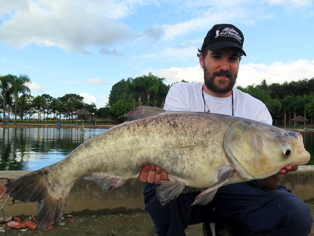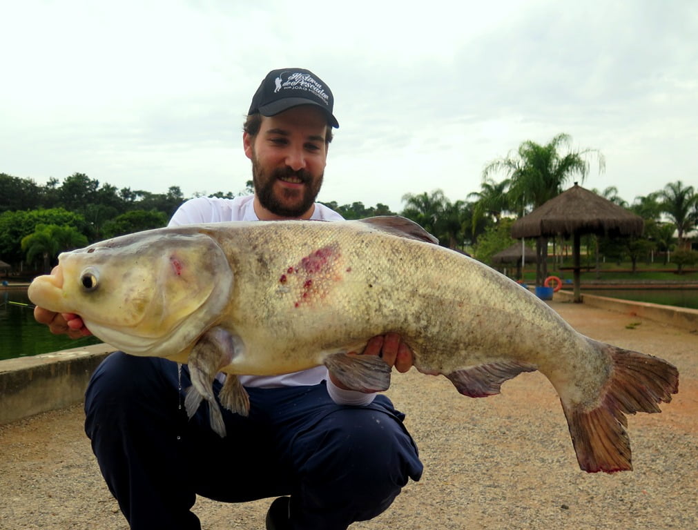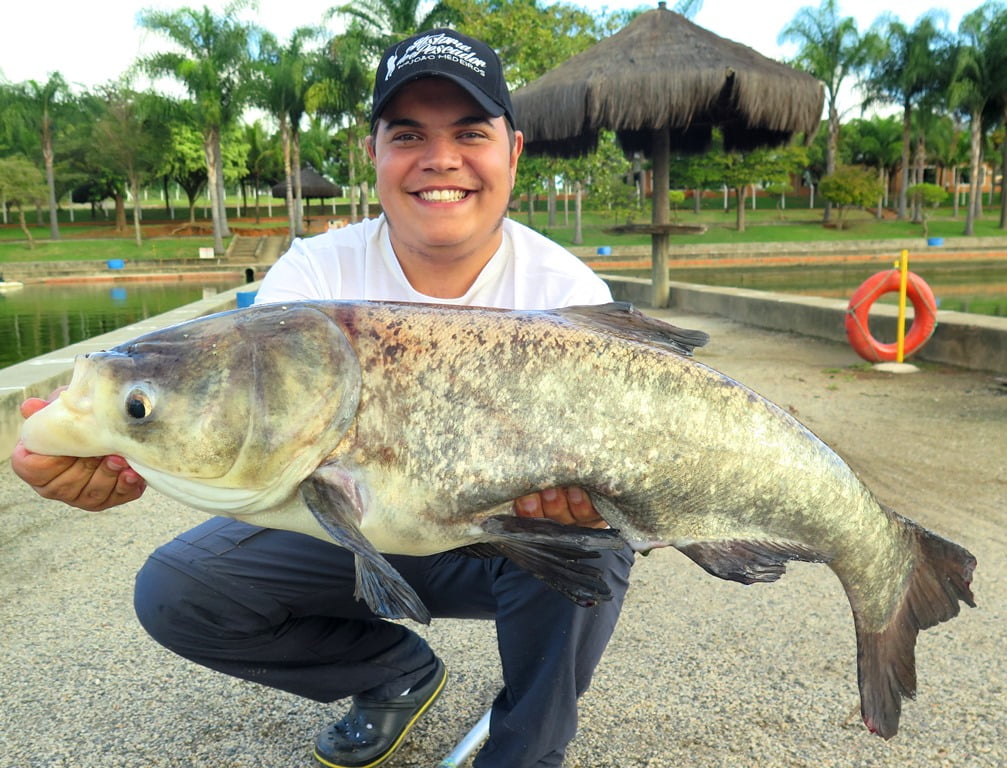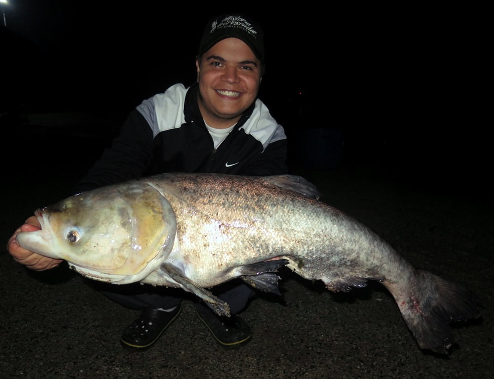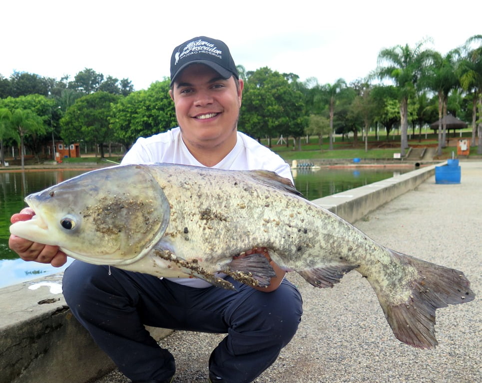 E para fechar a pescaria com chave de ouro, o último e maior peixe foi uma gigante carpa-cabeçuda: