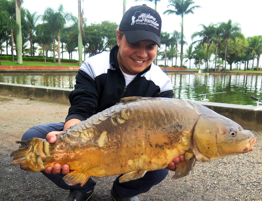 André capturou uma gigante carpa-espelho: