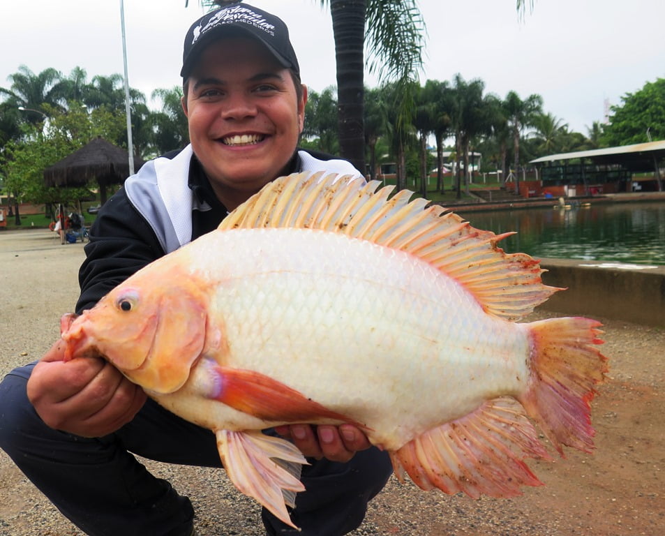 Destaque para as belas tilápias Saint Peter, com coloração única.