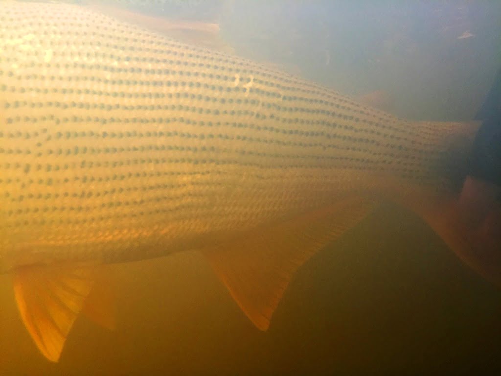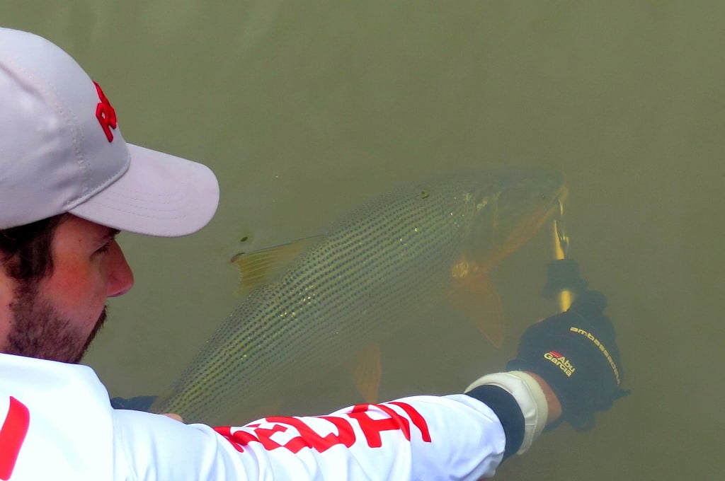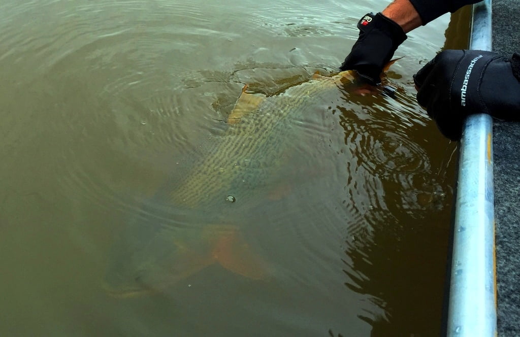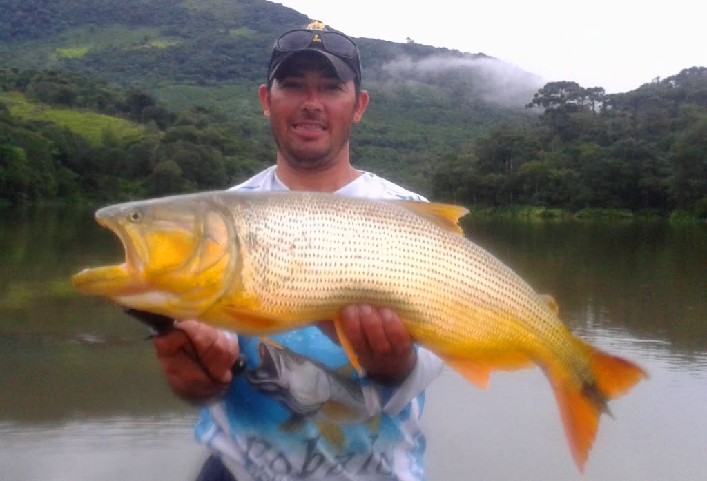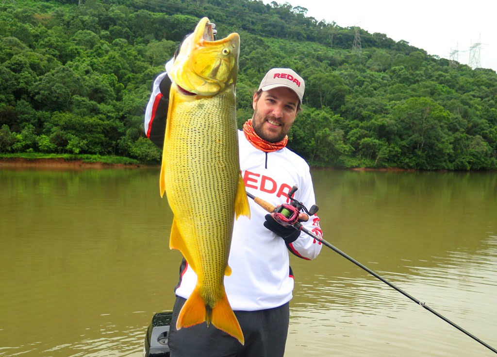 Porém, recentemente o dourado começou a aparecer e se desenvolver no local, provavelmente foi introduzido ou vazou de tanques próximos ao rio em enxurradas provocadas por fortes chuvas. Com uma represa farta de alimento e água limpa, a espécie se desenvolveu em pouco tempo, algumas fotos do Marco explicam bem o que estou falando: