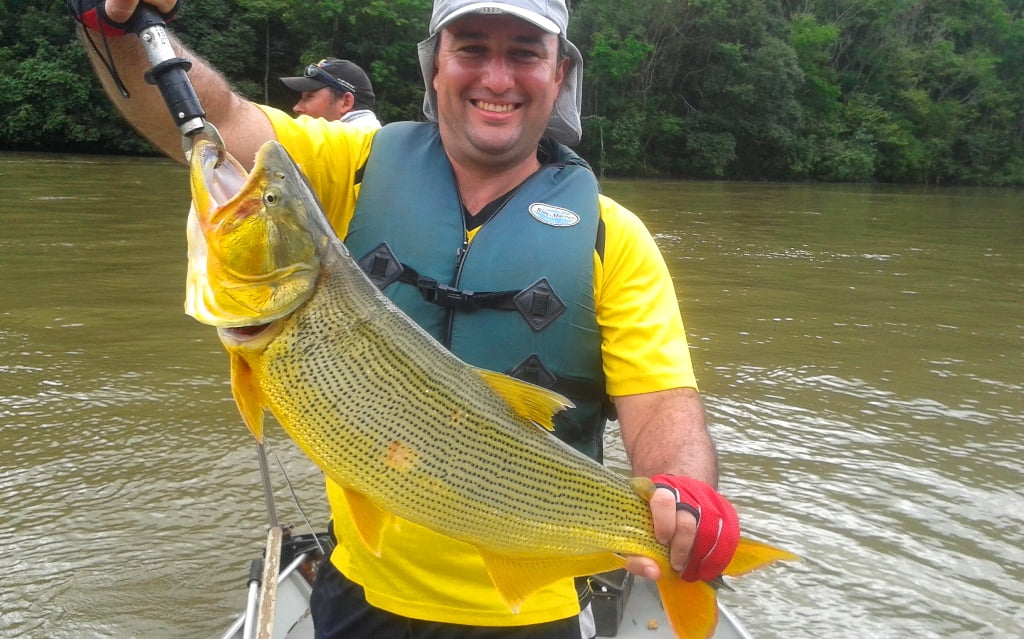 Já no final da pescaria, o momento que meu coração quase saiu pela boca. Um gigante dourado atacou minha isca no visual, a uns três metros do barco, correu tomando linha e saltou jogando a isca longe. Era um peixe de uns 6kg, esse momento vai ficar na memória!