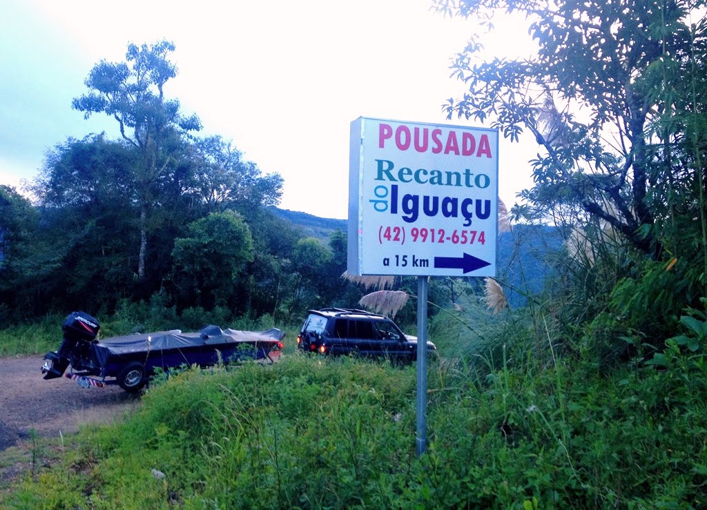 Vamos lá, mesmo com previsão muita chuva, fomos para pescar nos dias 30 e 31 de janeiro/2016, eu e meu irmão Pedro, de Londrina-PR até Guarapuava-PR, cerca de 300km. Por lá deixamos o carro na casa do Marco e seguimos com ele mais cerca de 100km, até próximo de Coronel Domingos Soares-PR, onde fica localizada a Pousada Recanto do Iguaçu.