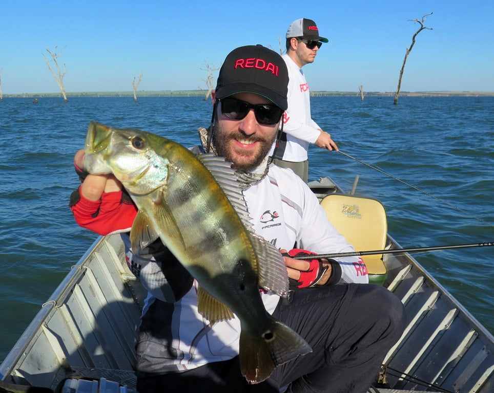 Com a água extremamente gelada e represa baixa, a estratégia foi pescar nos locais mais fundos em pauleiras nos meios, com iscas de profundidade.