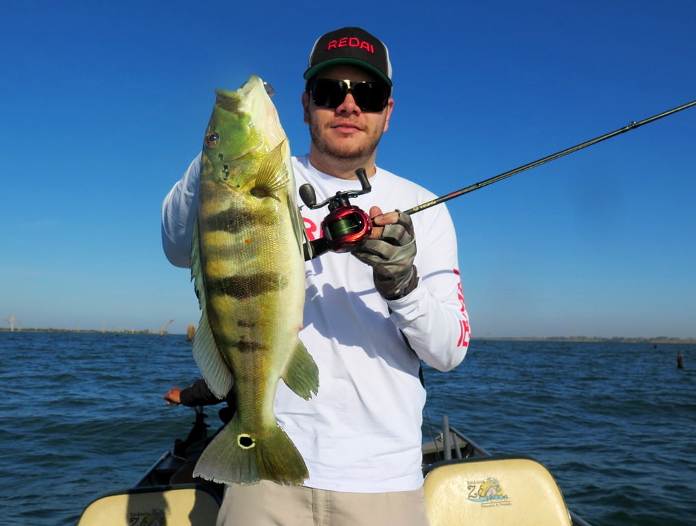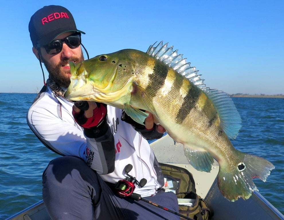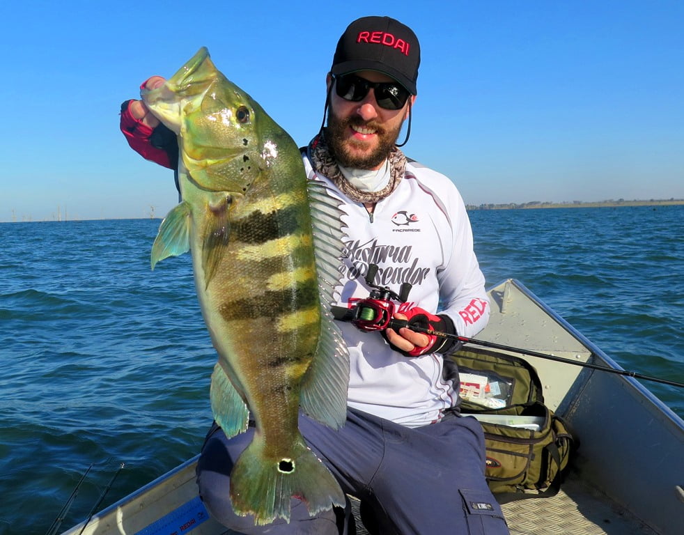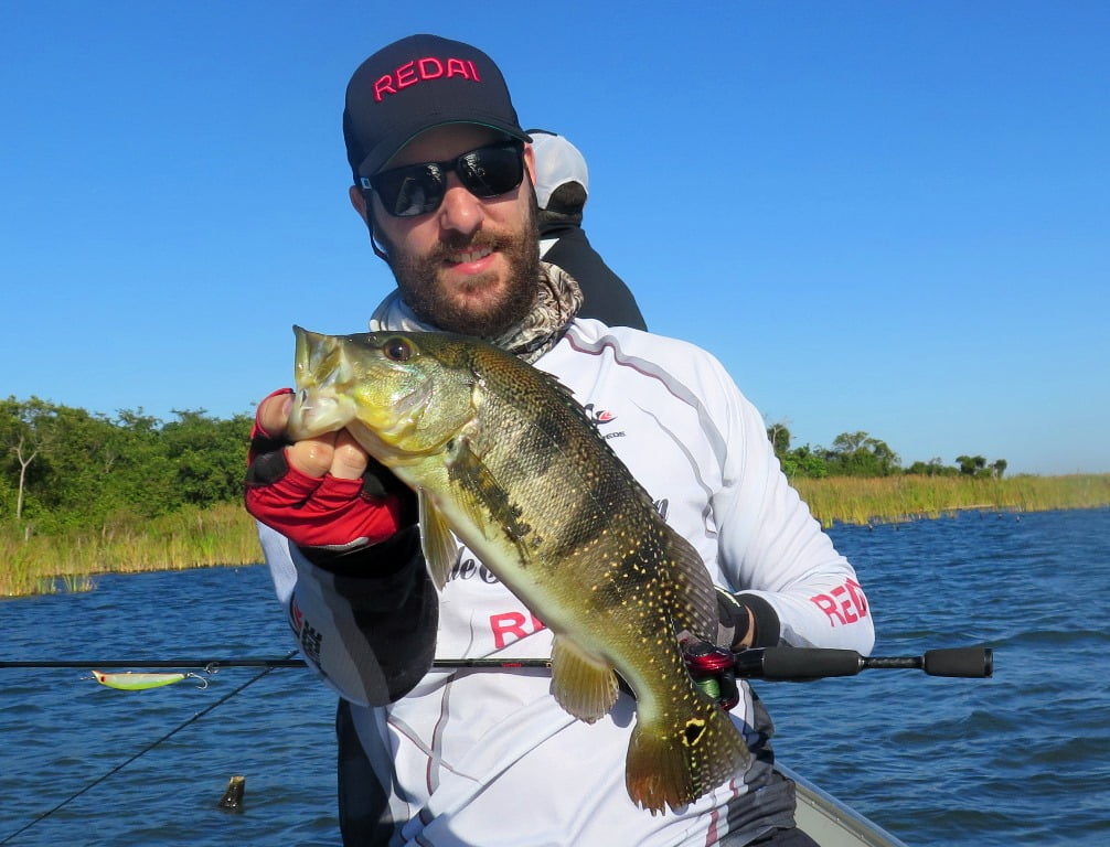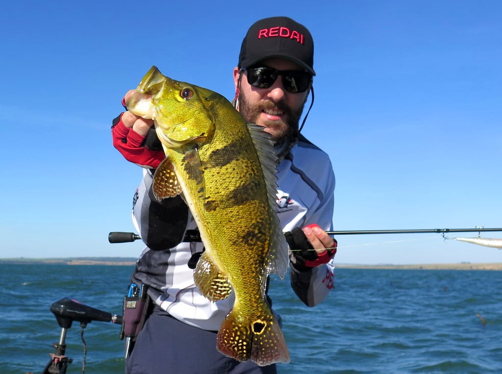Iscas: Para os tucunarés no inverno com vento e água gelada optei pelas iscas barbeludas como a Fusion Shad 75, X-Rap 10, Vision 110. Para as traíras: Bonnie 95.