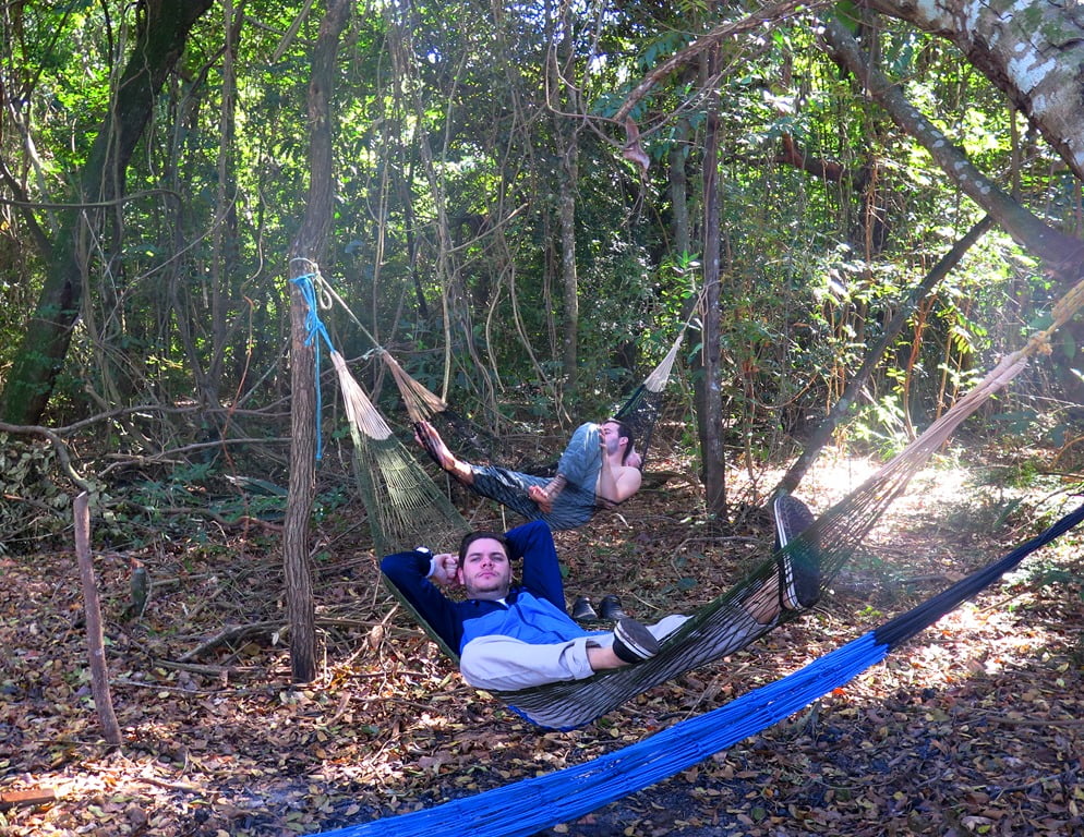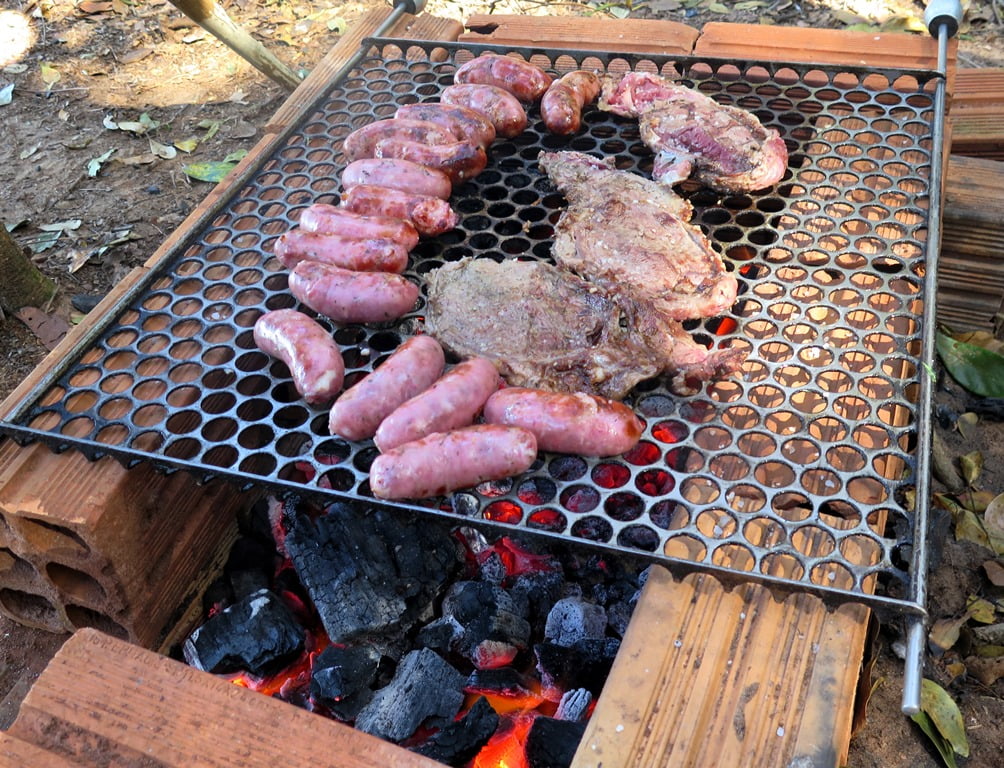 Não poderiam faltar as imagens da hora do almoço: Churrasco na ilha, descanso nas redes e paisagem espetacular!