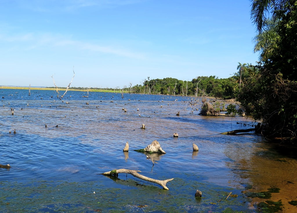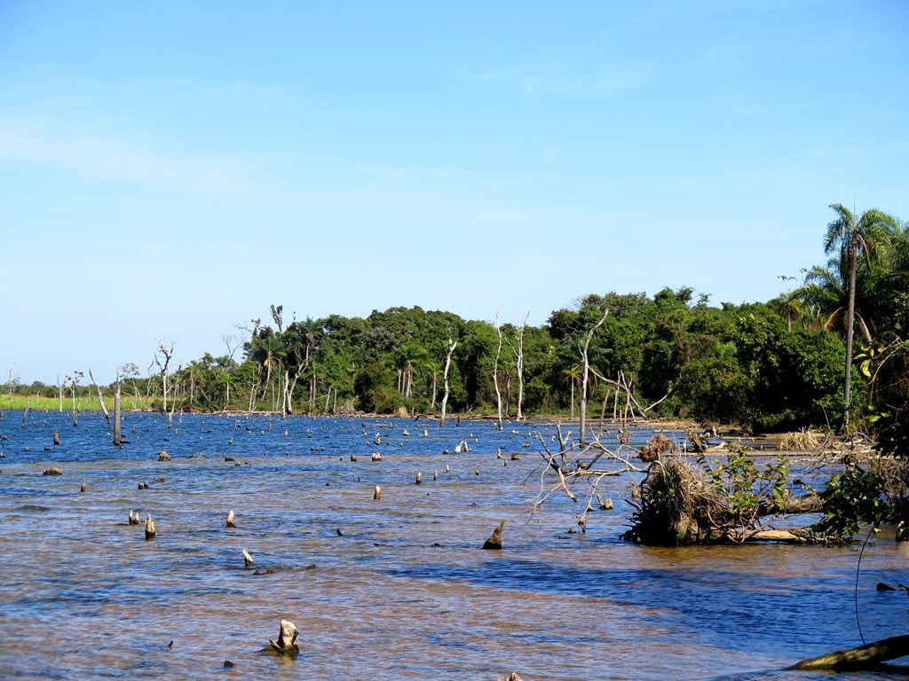 Ao descer no rio, constatamos um fator anormal na região: O nível da água, que estava mais de um metro abaixo do normal. Segundo os guias, tinha abaixado naquela semana e afetou a pescaria nas margens e locais abrigados, pois os mesmos ficaram muito rasos.