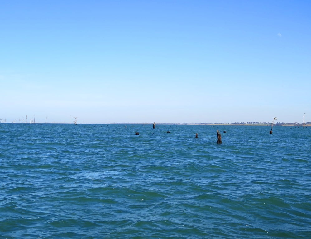 Muitas marolas no meio do rio, vento não dava trégua: