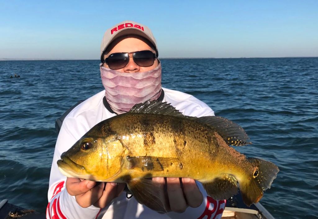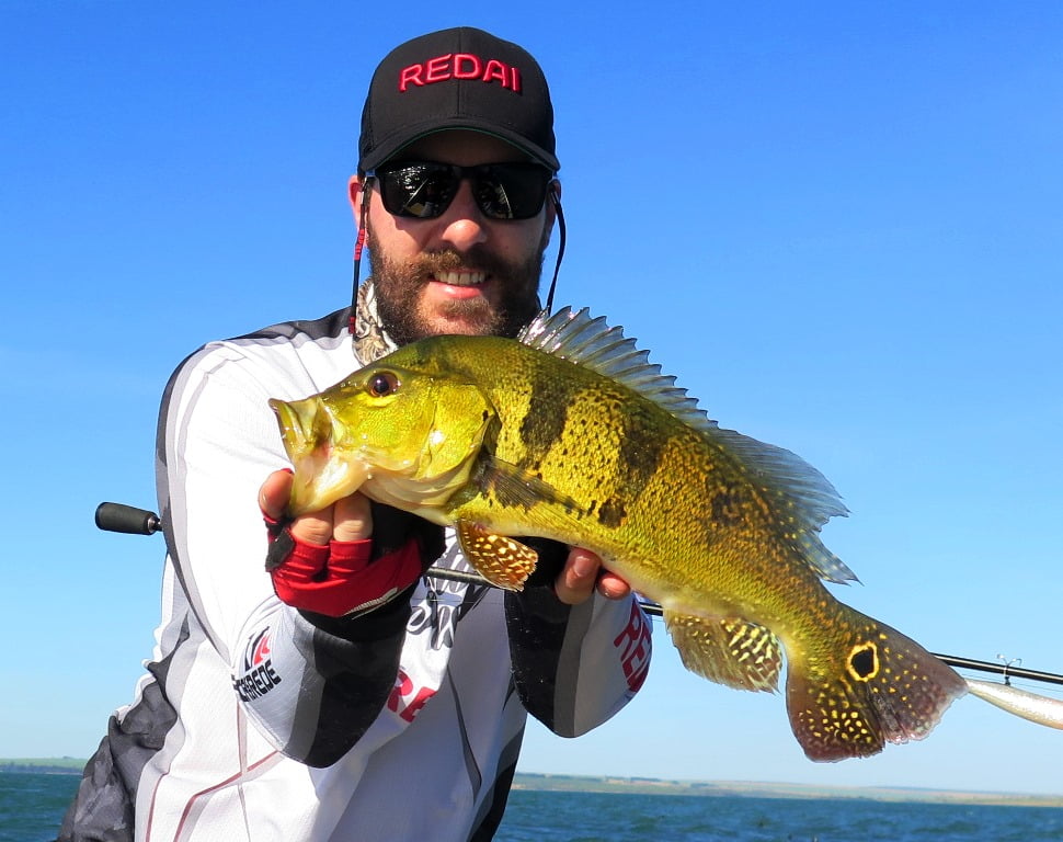 Na parte da tarde pegamos alguns peixes pequenos e o único destaque foi esse bonito tucunaré amarelo: