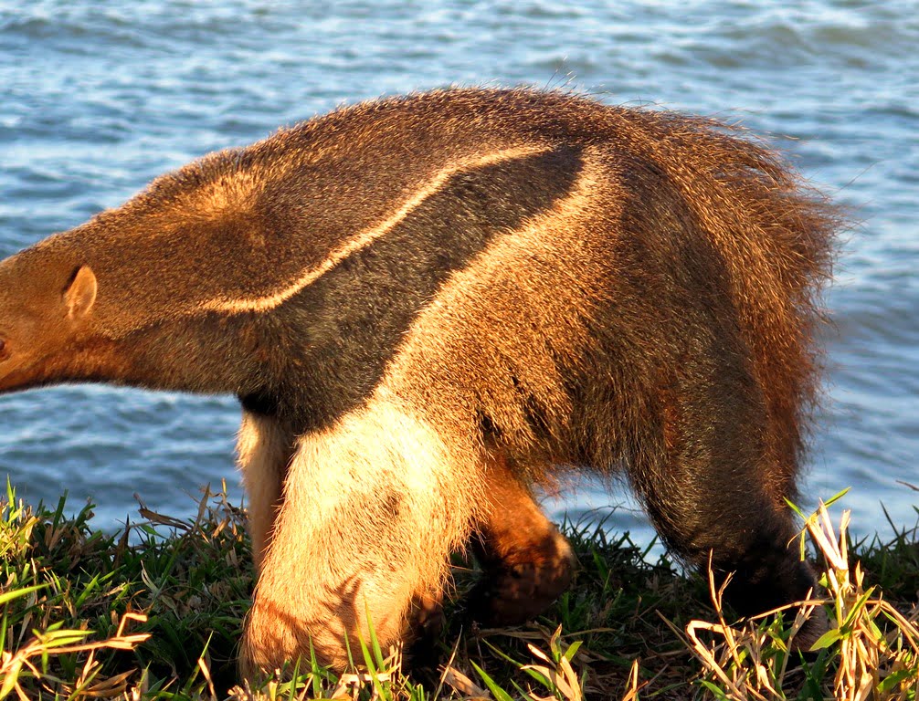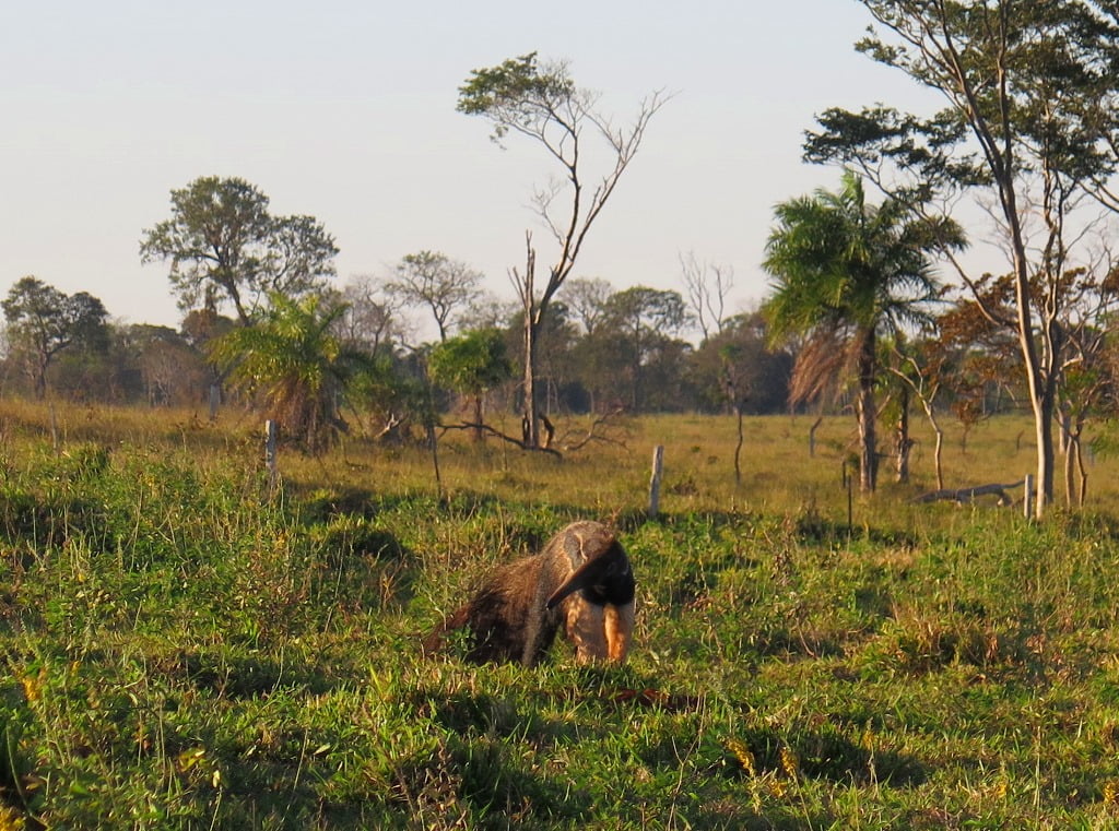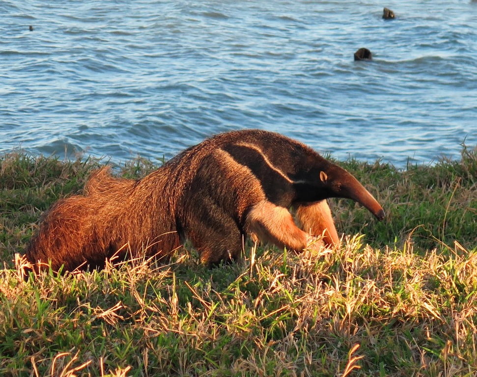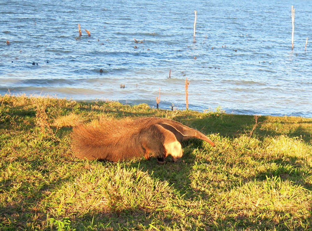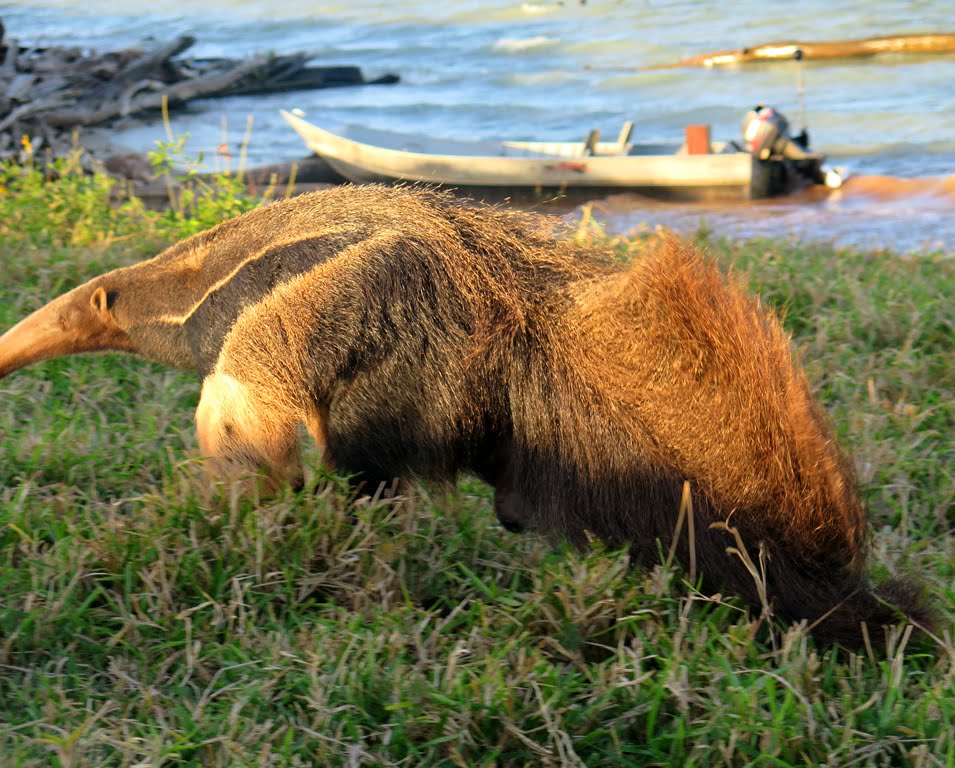 Estávamos pescando na região da Fazenda Pedrinha, na margem do MS e avistamos um enorme e lindo Tamanduá-bandeira. Imediatamente o guia Danilo encostou o barco para descermos ver ele de perto e tirar umas fotos. Ganhamos o dia!