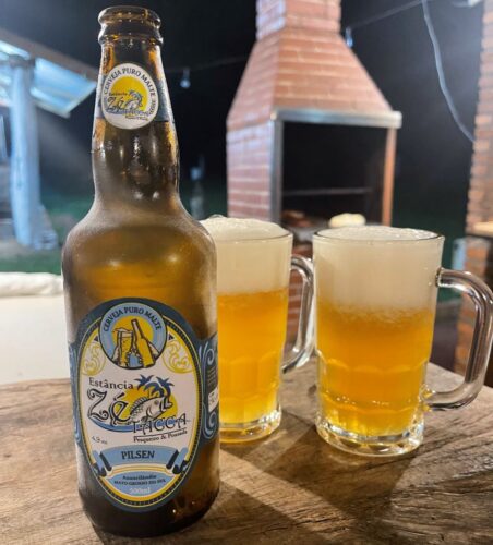 Já chegamos e fomos recepcionados pelo proprietário Fernando, que agilizou o churrasco e já nos serviu a sua cerveja artesanal. Aprovada!