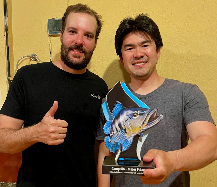 Quem levou o troféu de maior peixe do grupo, foi o Jun, com um lindo tucunaré azul de 57,5cm!