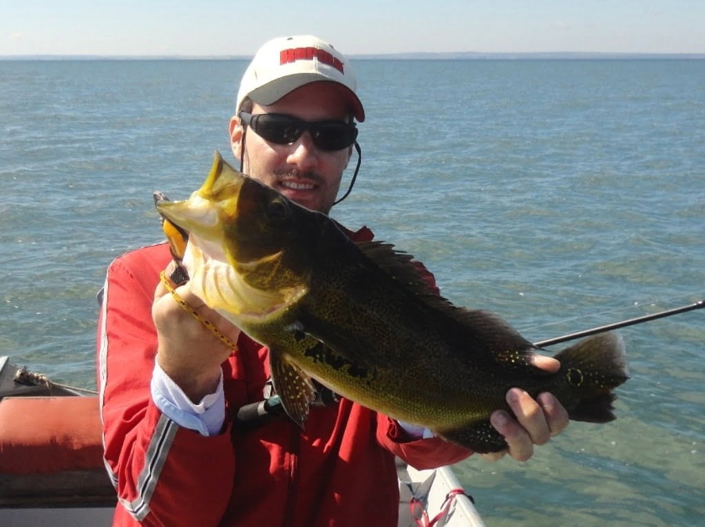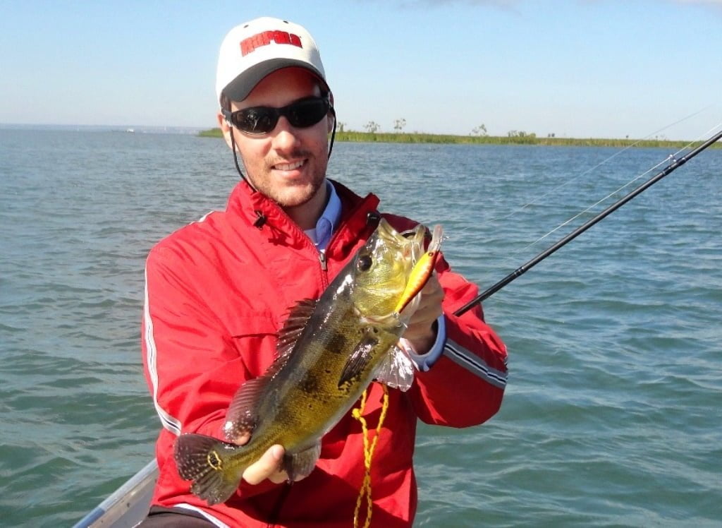 Chegamos em um lugar mais limpo e fundo, aí resolvi colocar uma isca que salvou minha manhã, Fusion Shad 75 da sumax, tirei três bonitos tucunarés amarelos, que brigaram muito no fundo.
