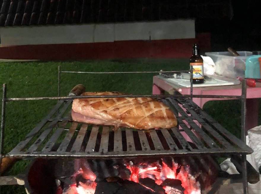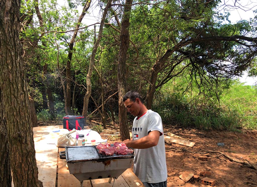 No primeiro dia, parada para o churrasco:
