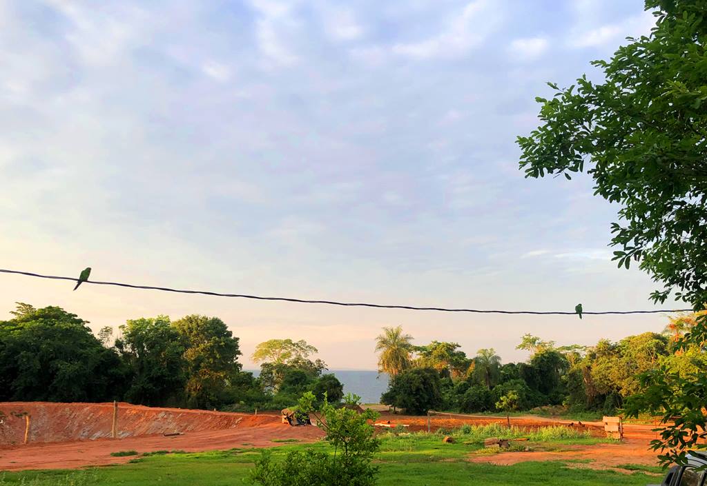 Amanhecer na pousada, papagaios:
