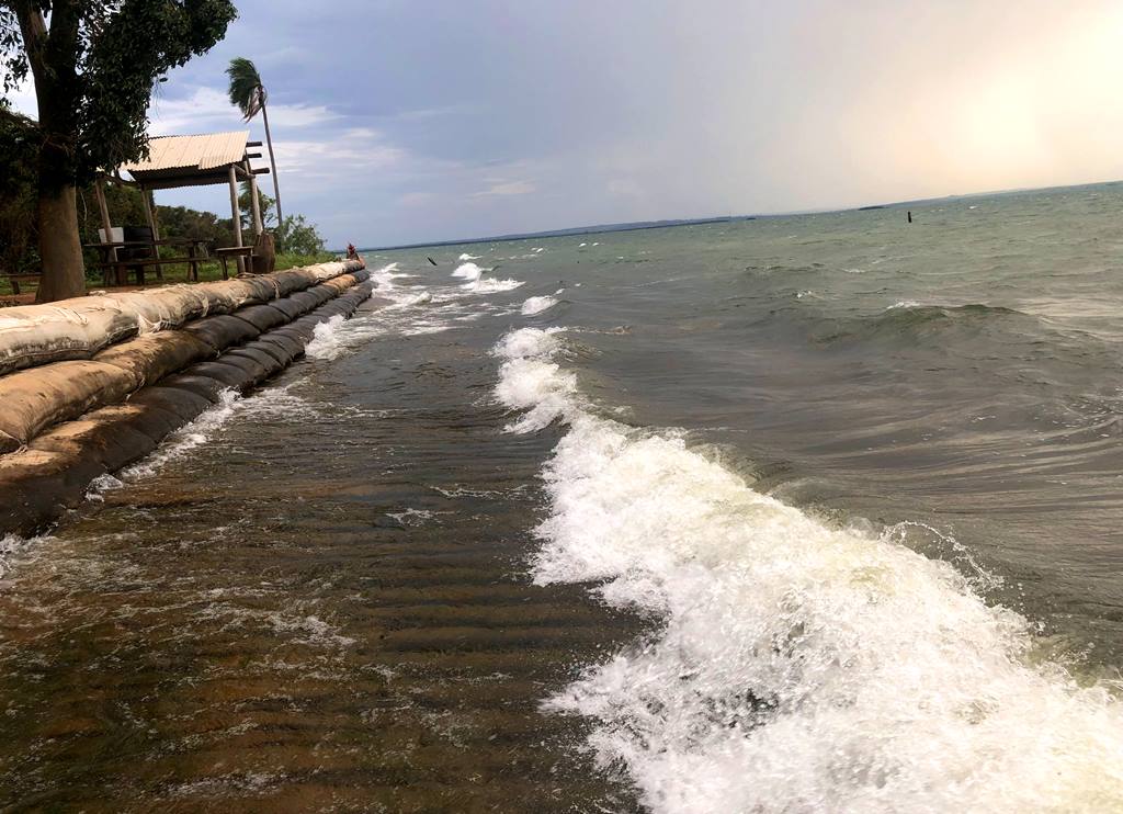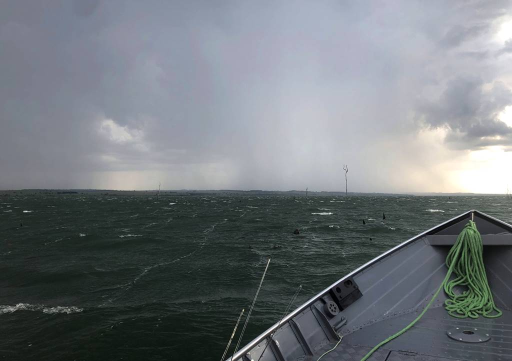 O tempo fechou, e o vento soprou com força! Voltamos com muitas marolas no rio.