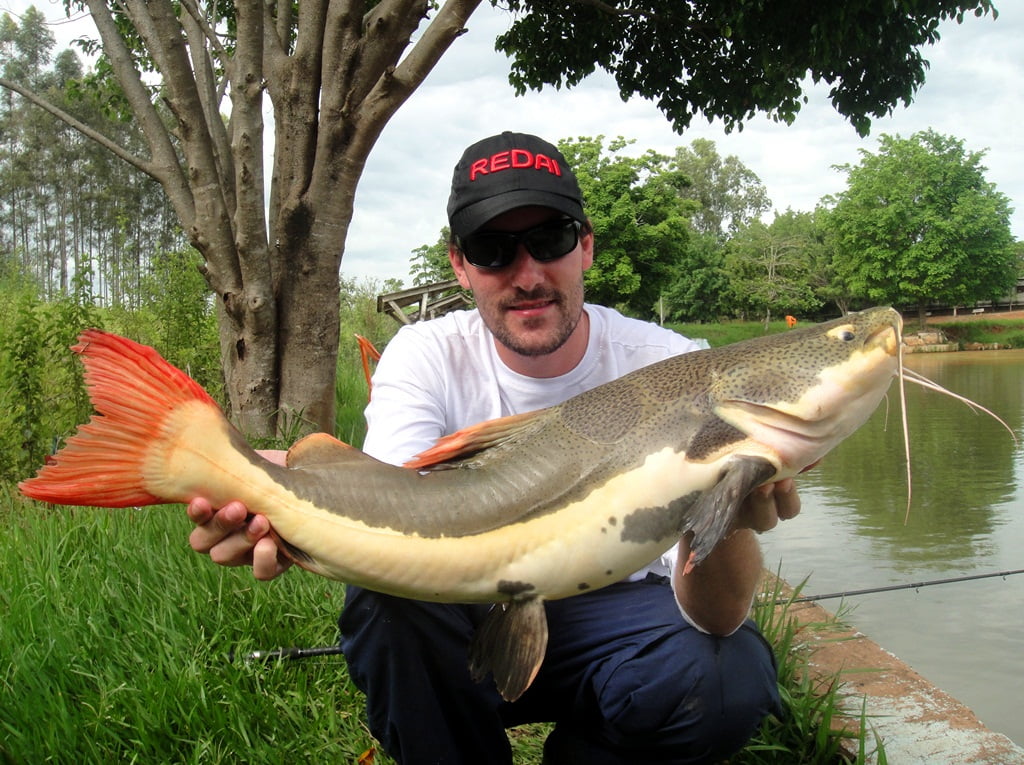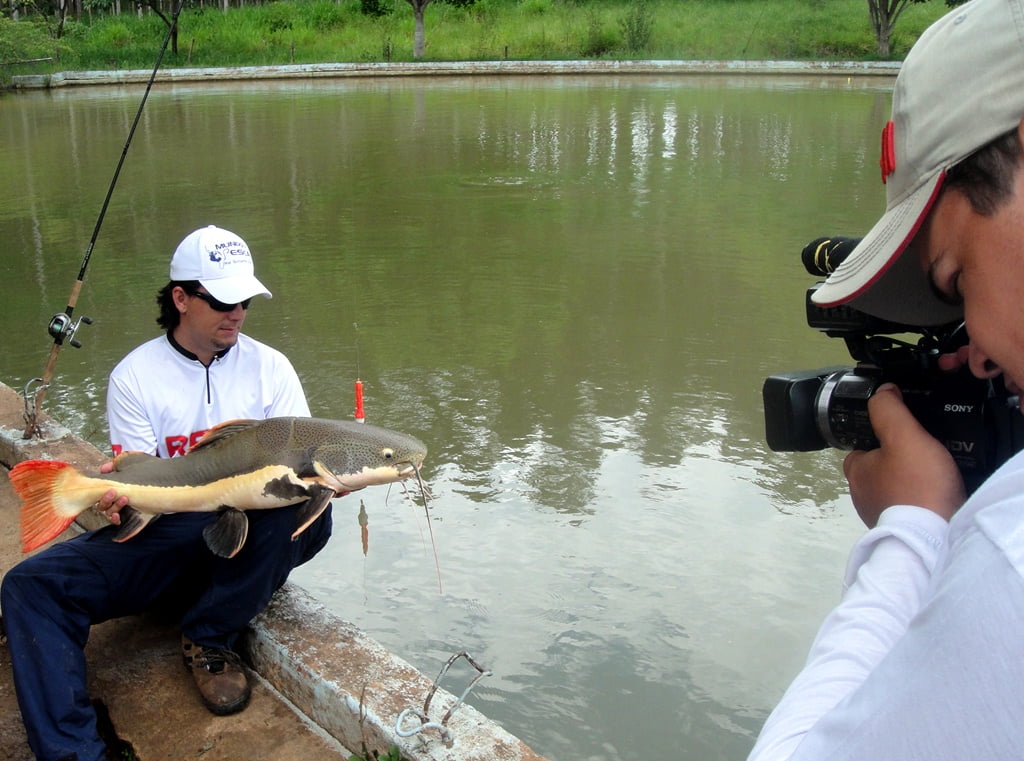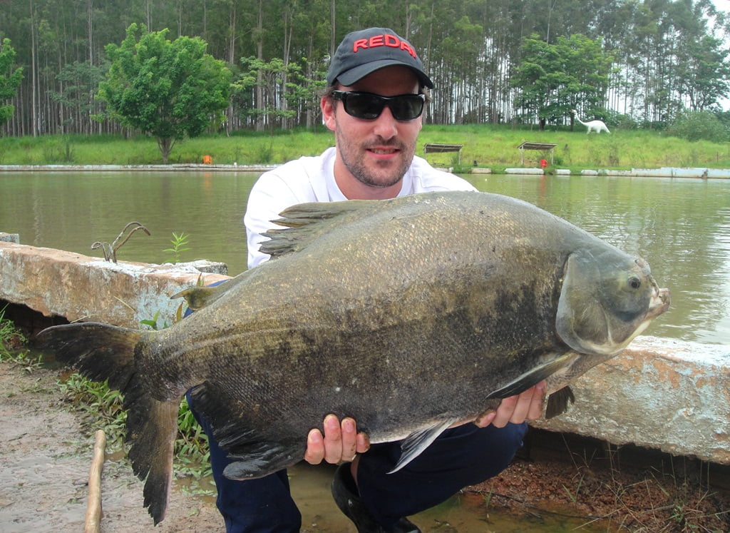 Nosso amigo e cinegrafista André ”Dentinho”, nos intervalos das gravações arrumava um tempinho para dar uns arremessos e pegou belos exemplares como esse grande tambacu, no pão boiando: