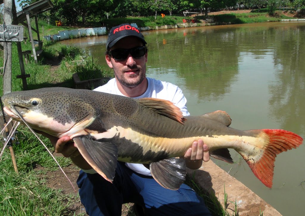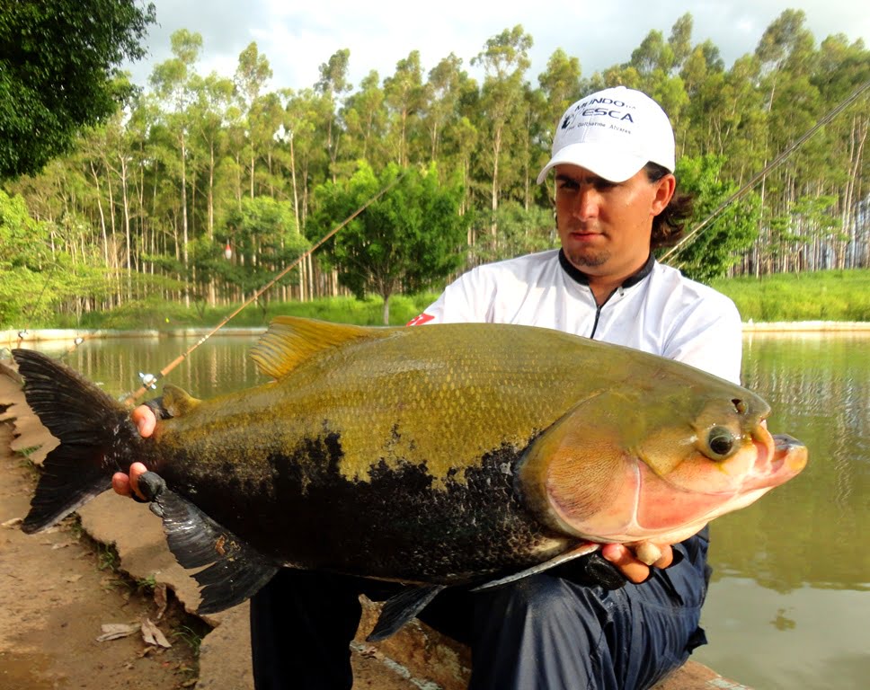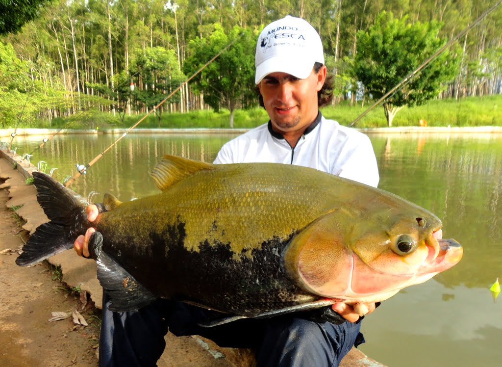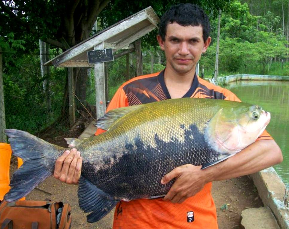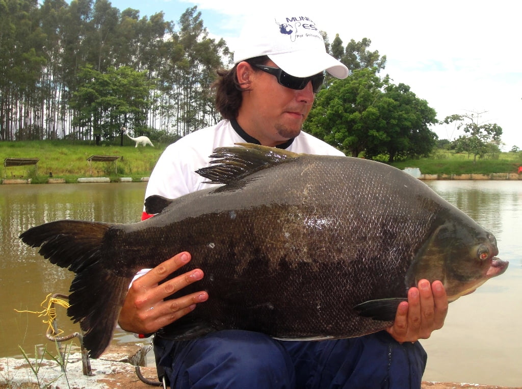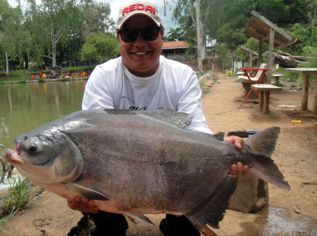 Reparamos que os tambaquis do Stella, em média, são maiores que os tambacus. O amigo pescador Leonardo de Presidente Prudente-SP também capturou belos tambaquis como esse da foto, no pão boiando: