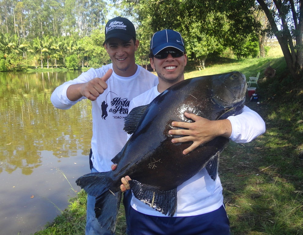 Começou então, uma ventania descomunal e ficando impossível de pescar com cevadeira tivemos que dar uma pausa na pescaria. Mas no final da tarde o vento parou aí as ações voltaram com tudo! Alguns tambacus com peso entre 12 e 15kg: