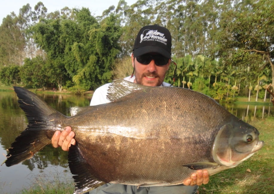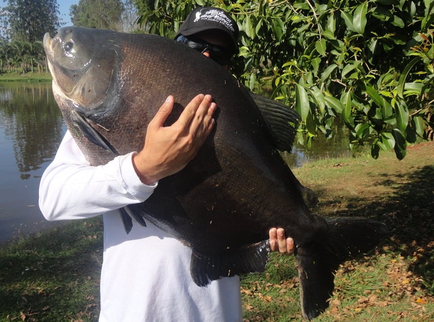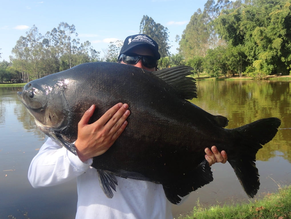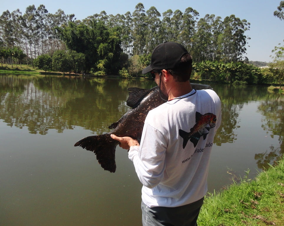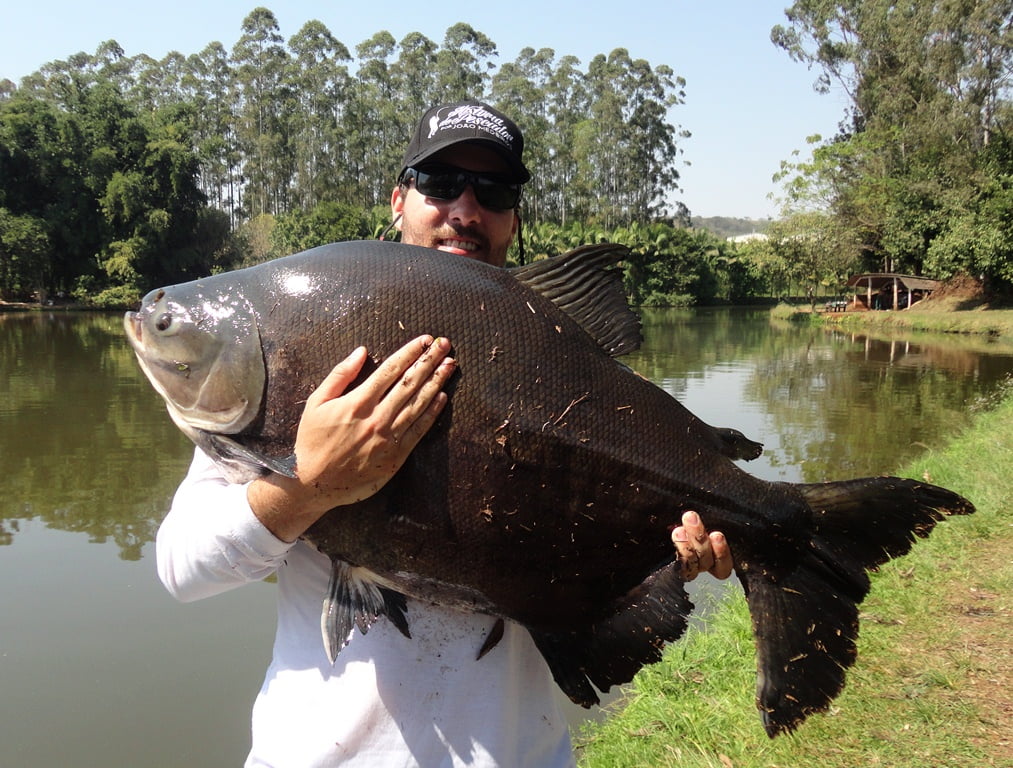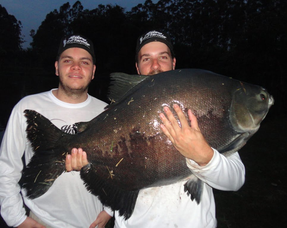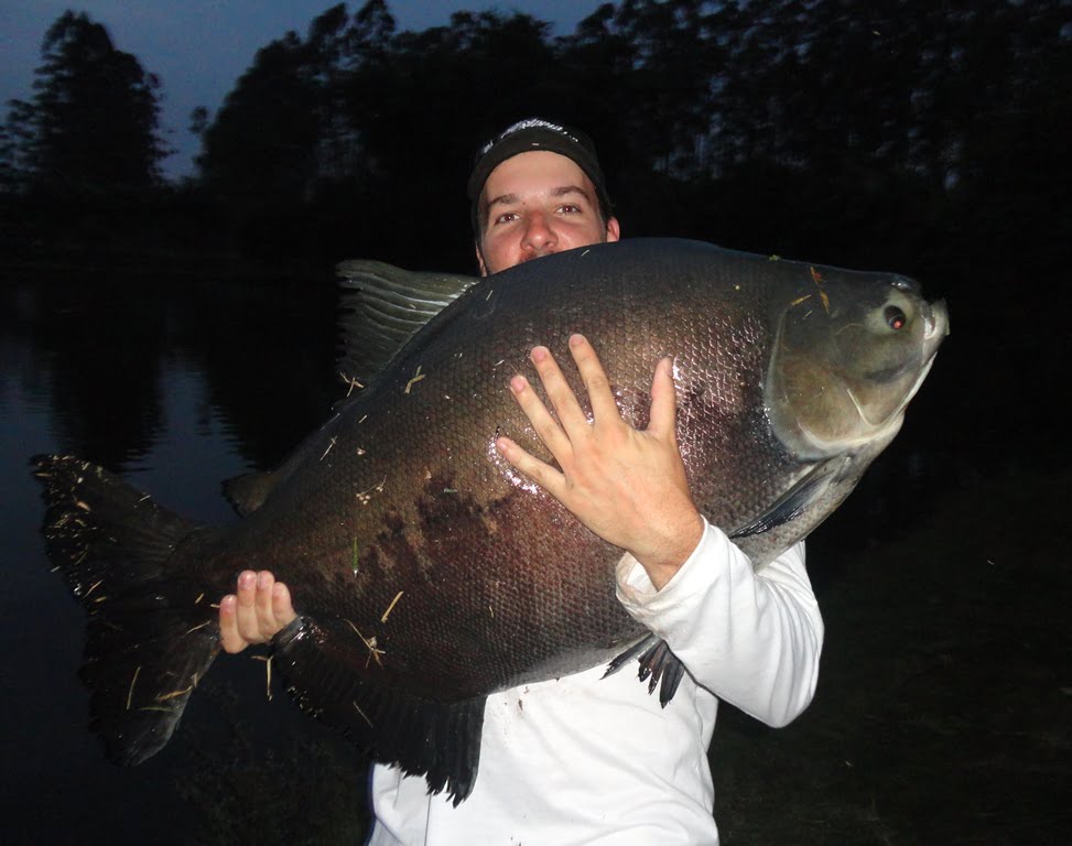 Os peixes estavam comendo demais, entre fisgadas perdidas e linhas arrebentadas, acertei um belo tambacu com 20,5kg, peixe lindo, saudável, mereceu uma sessão de fotos: