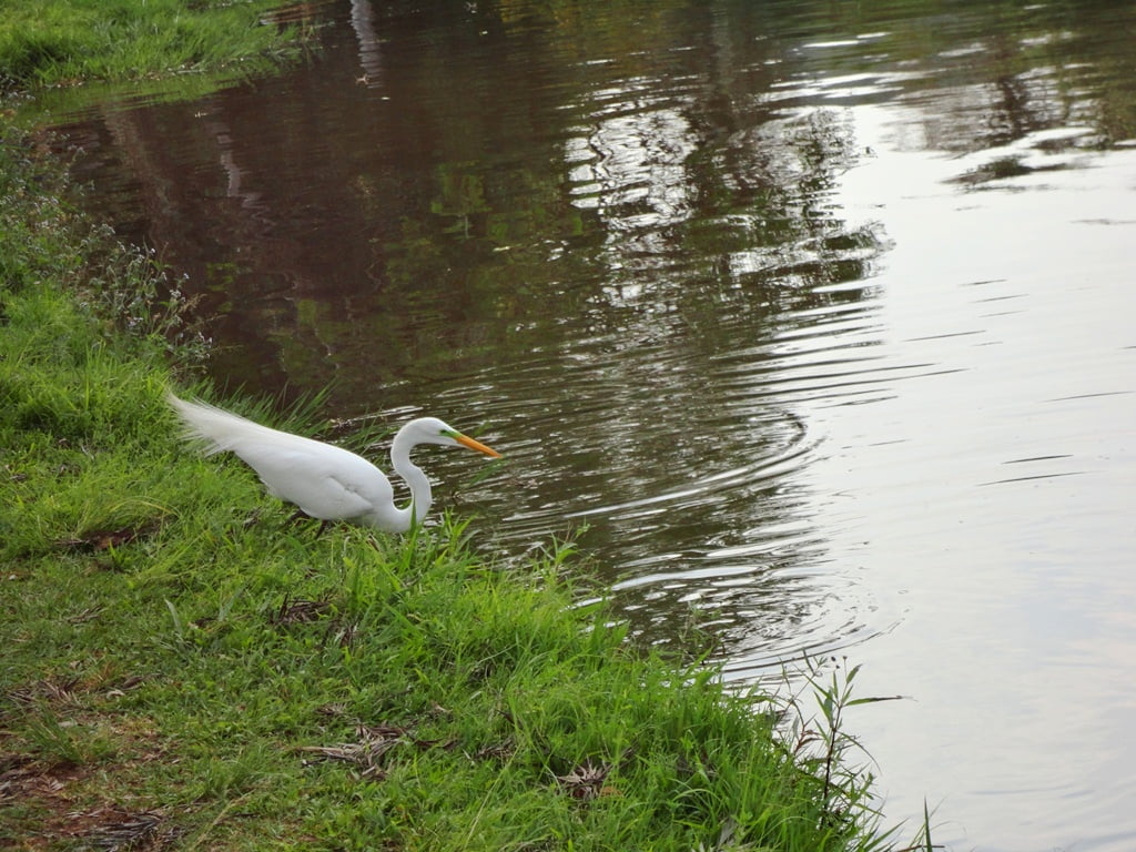 A cegonha estava pescando também, de olho nas tilapinhas da margem:
