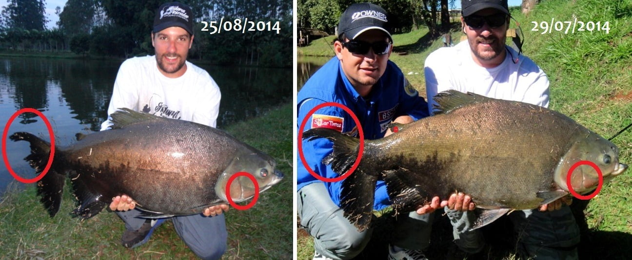 Reparei ao chegar em casa e ver a foto acima, de que se tratava do mesmo peixe que capturei a um mês atrás, quando gravava para o Programa Mundo da Pesca do meu amigo Guily. Isso só comprova a eficiência do Pesque & Solte!