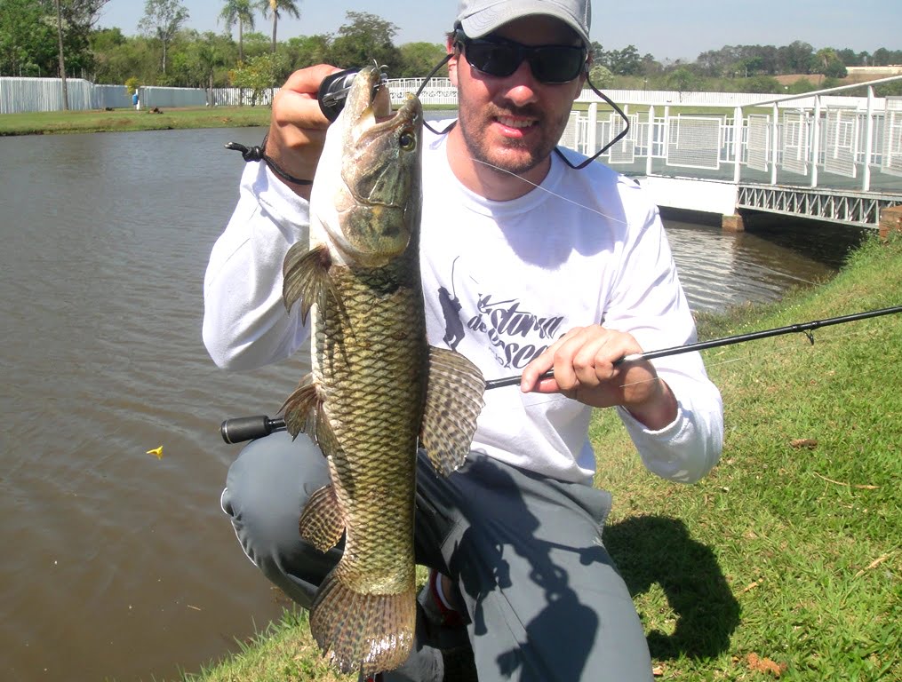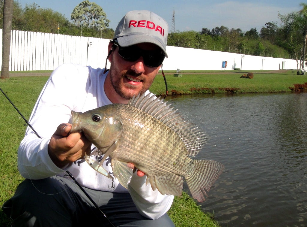Até uma bonita tilápia acabou entrando na isca artificial, esta no plug de meia água (3D Minnow 70):
