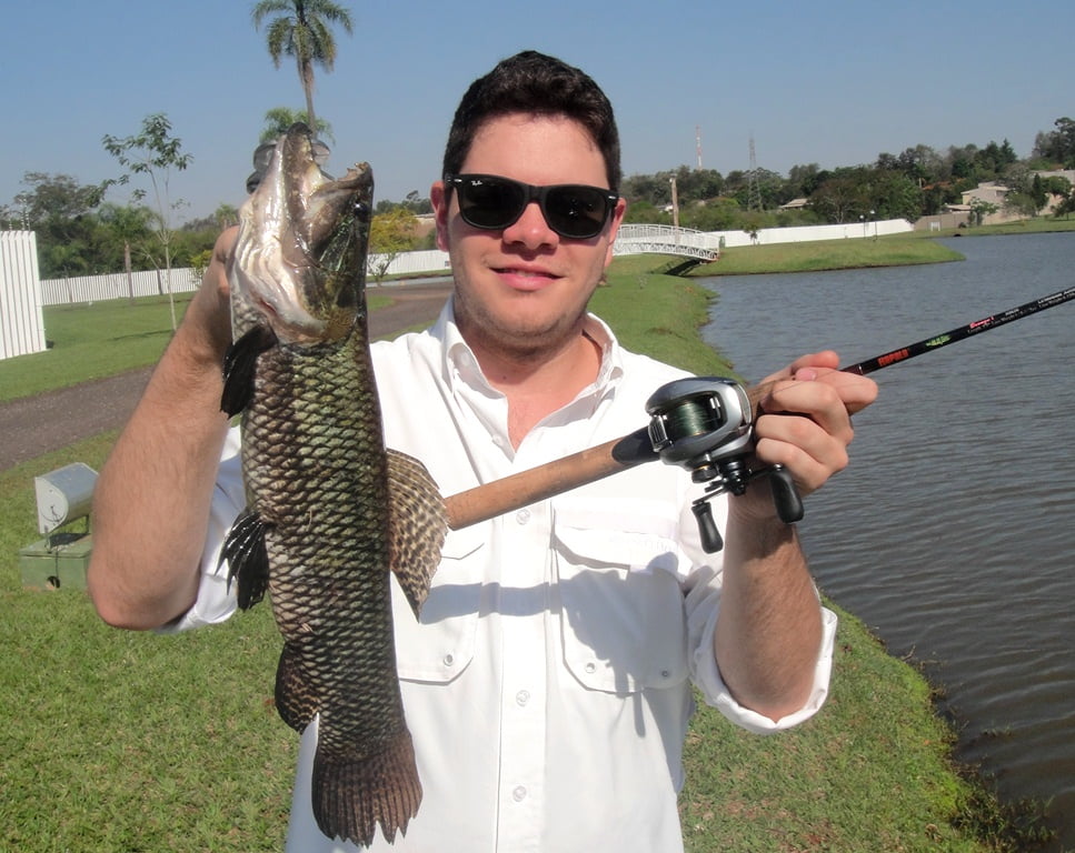 Para tentar outras espécies de peixe, como o matrinxã e o dourado, arremesse mais para o meio do lago: