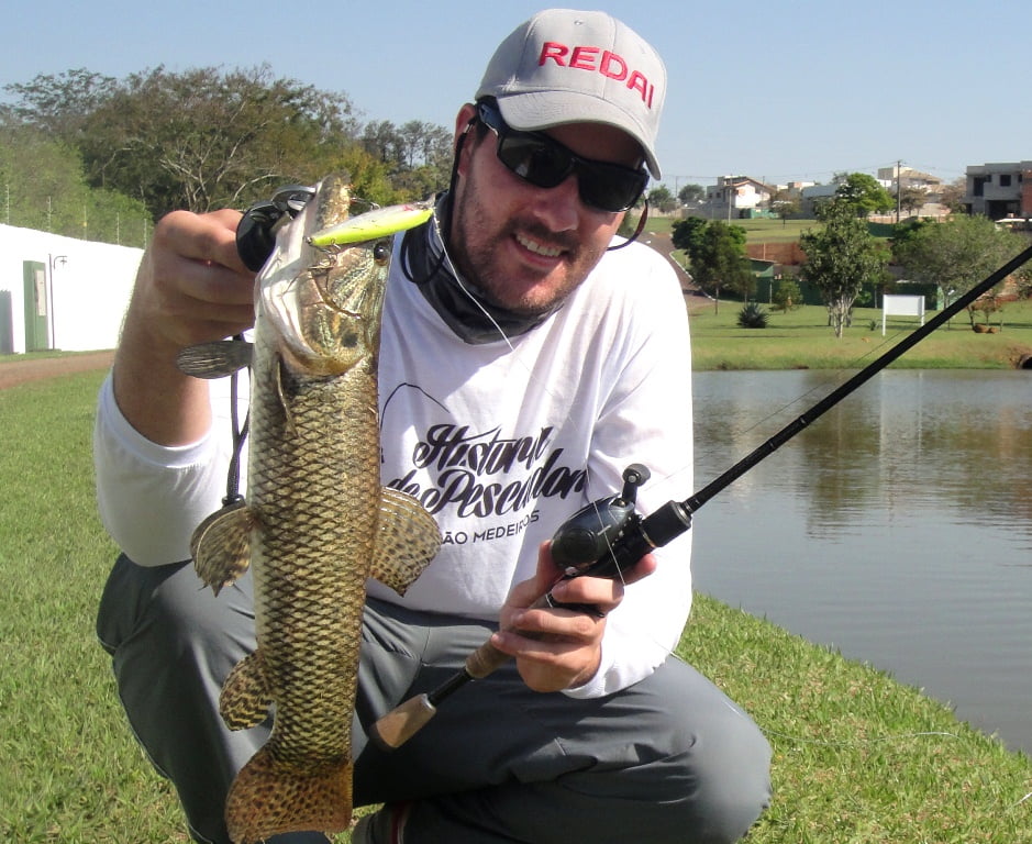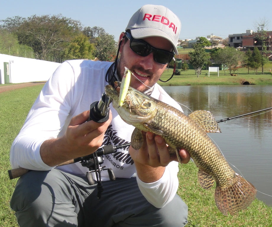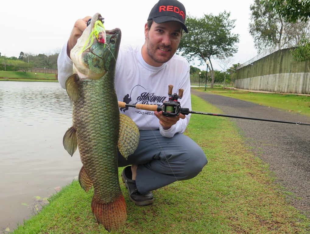 Foi uma pescaria de uma tarde, em um condomínio aqui na cidade de Londrina, mas rendeu muita ação das traíras, e também de douradinhos, tilápia e matrinxãs. Todos os peixes foram capturados na modalidade ”baitcasting” ou pesca de arremesso com iscas artificiais.