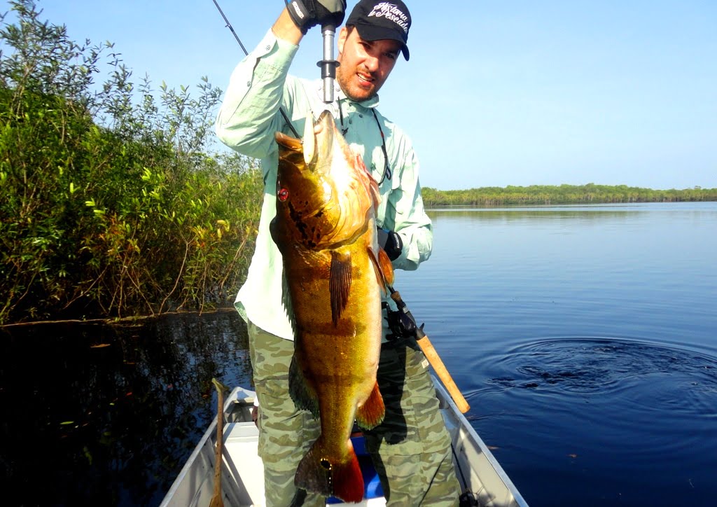 Obs: Rio muito cheio, pescaria difícil, e esse tucunaré foi explodir na minha isca aos 48 do segundo tempo, já no último dia de pesca, a maior porrada que já levei de um peixe em uma isca de superfície tipo stick/zara, inesquecível!’