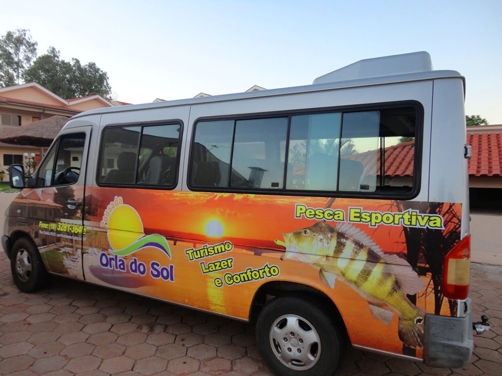Para a locomoção dos pescadores para o rio, a pousada conta com uma van novinha que está sempre a disposição.