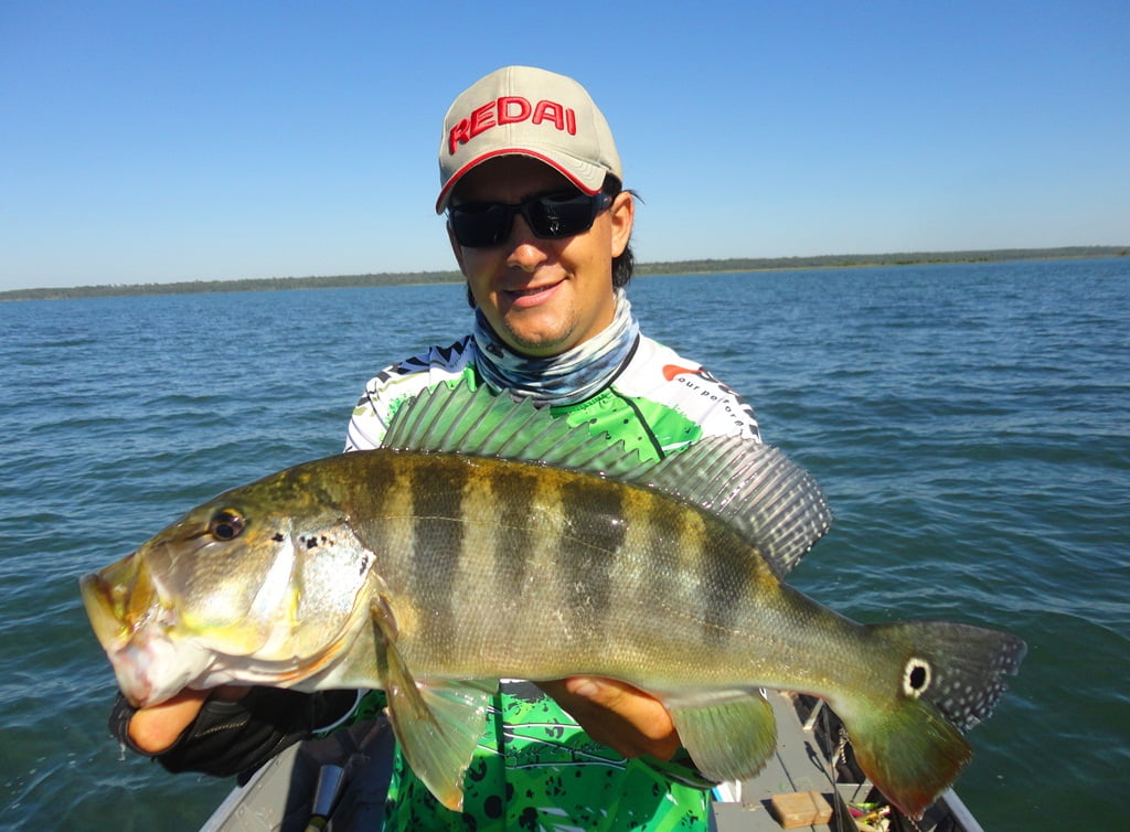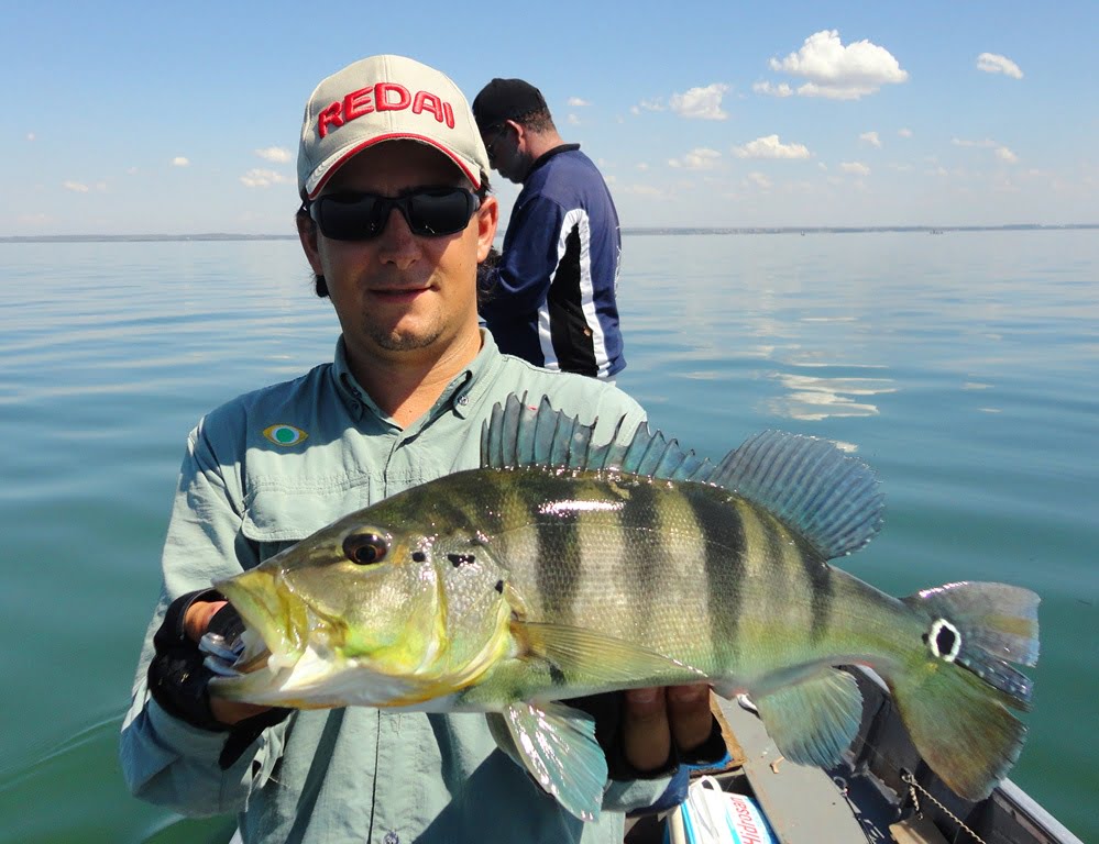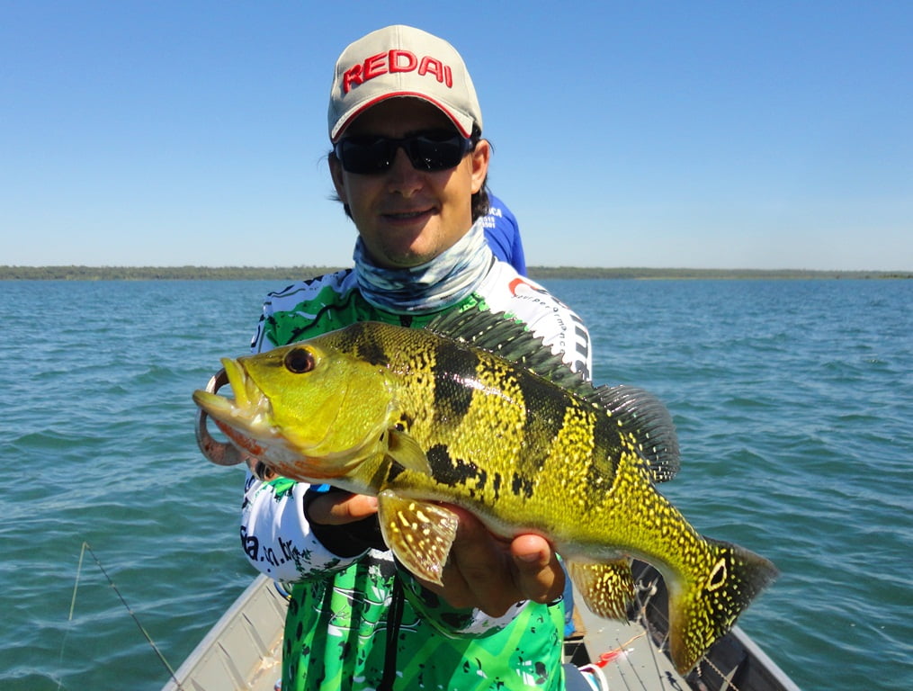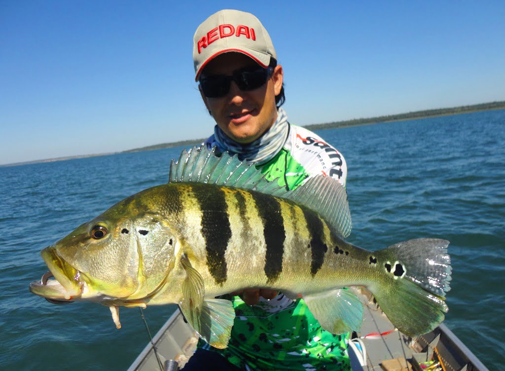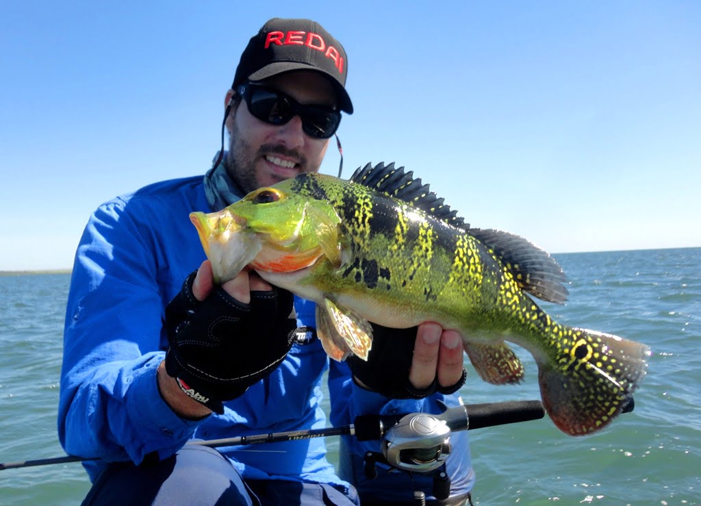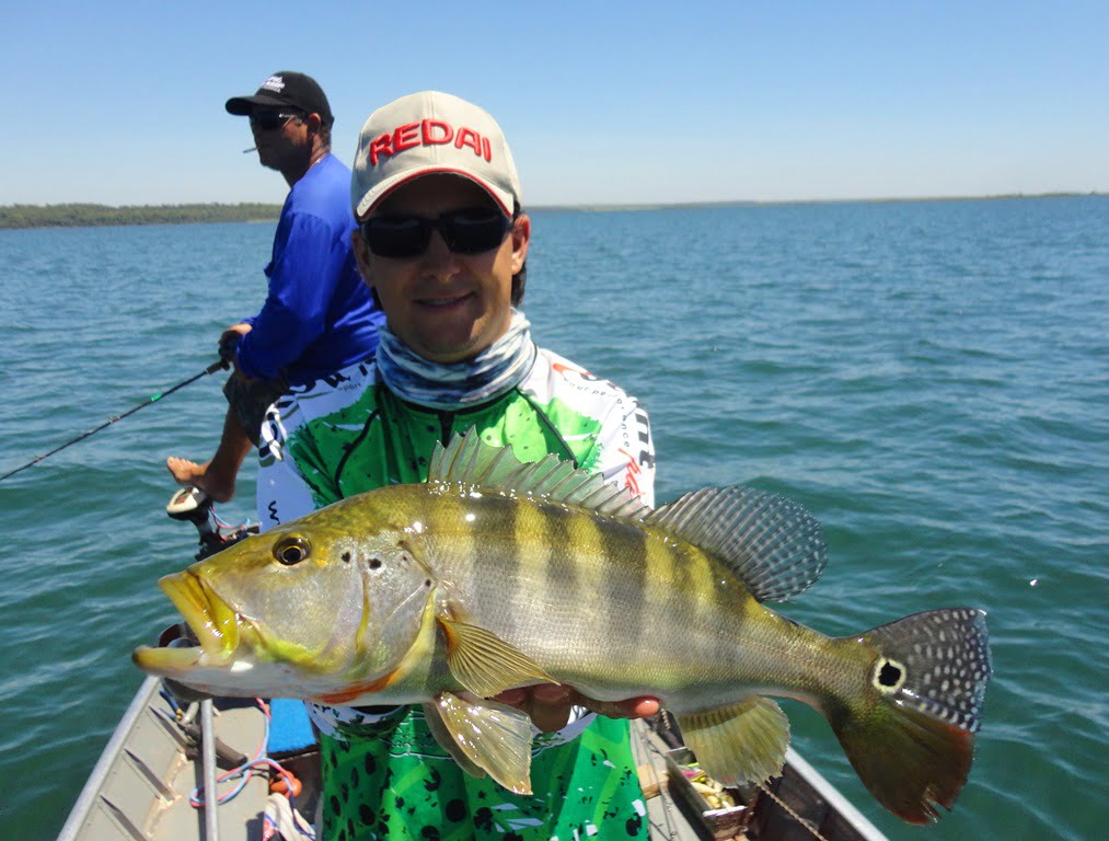 Depois de uma boa noite de sono, acordamos para o primeiro dia de pesca, mesmo com muito vento, saímos pro rio. Logo nos primeiros arremessos percebemos que não seria fácil, os peixes seguiam a isca até perto do barco mas não atacavam por nada, o motivo disso seria a época de acasalamento dos tucunarés. Optamos então por trabalhar as iscas mais lentamente e alguns peixes foram aparecendo.