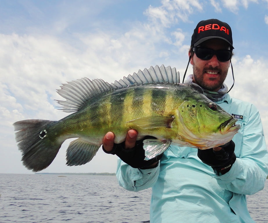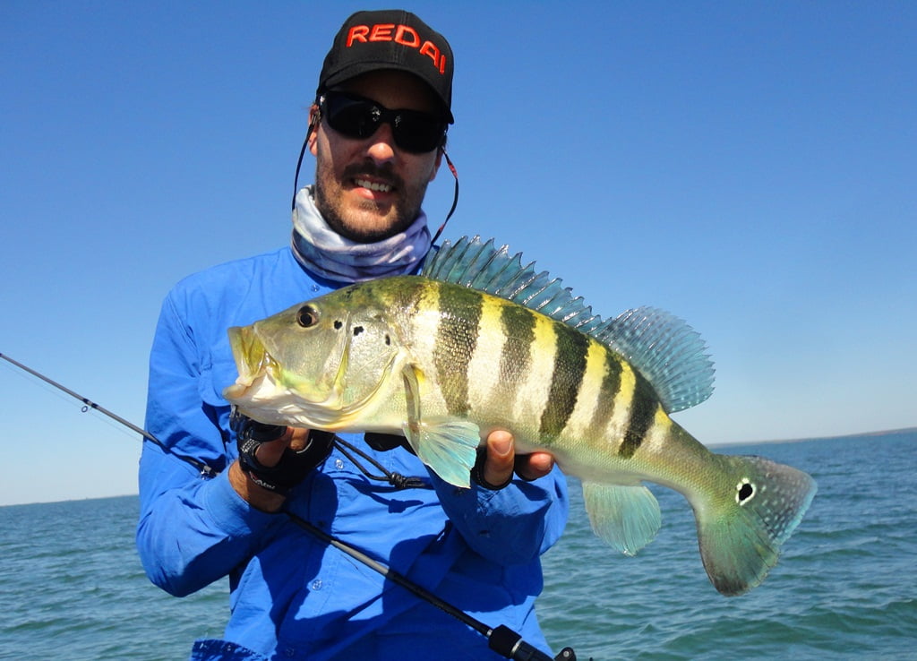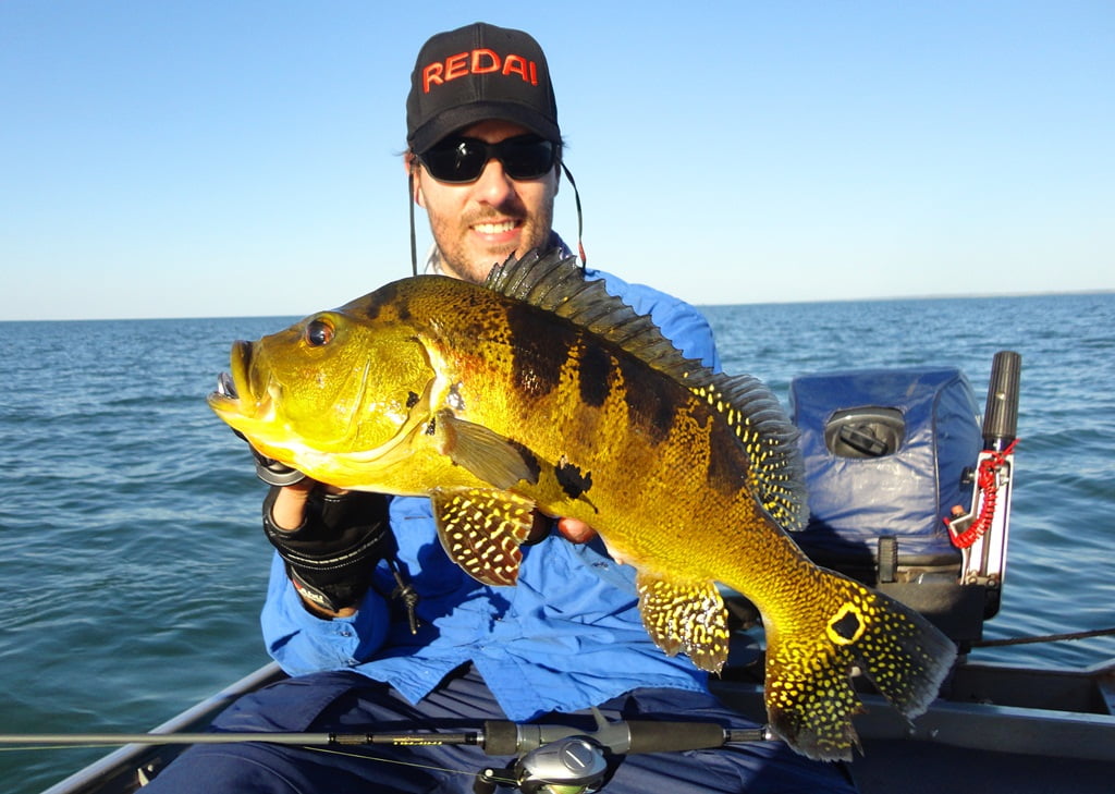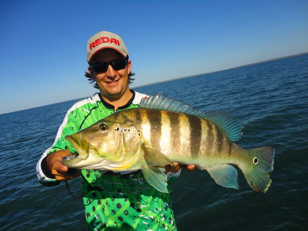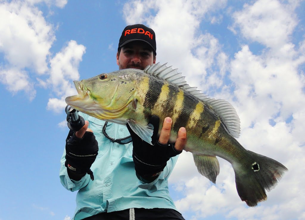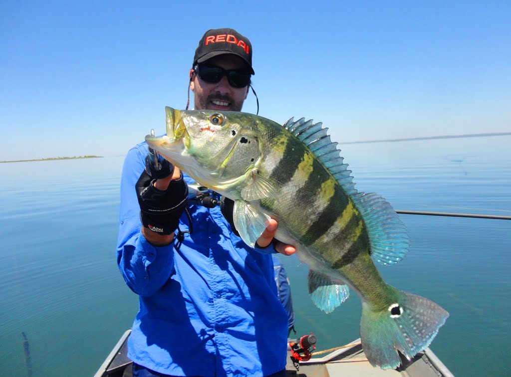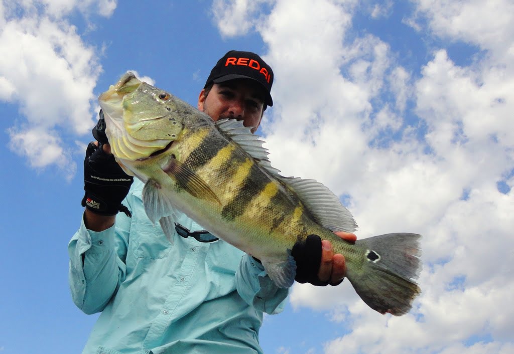 Depois de uma boa noite de sono, acordamos para o primeiro dia de pesca, mesmo com muito vento, saímos pro rio. Logo nos primeiros arremessos percebemos que não seria fácil, os peixes seguiam a isca até perto do barco mas não atacavam por nada, o motivo disso seria a época de acasalamento dos tucunarés. Optamos então por trabalhar as iscas mais lentamente e alguns peixes foram aparecendo.