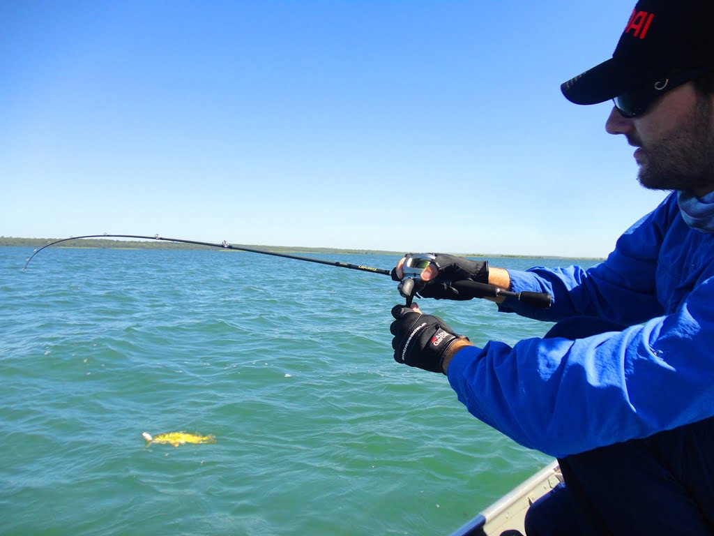 No segundo dia, mesmo com o peixe muito manhoso acertamos alguns grandes, além também de uma linha arrebentada e garatéias totalmente abertas.