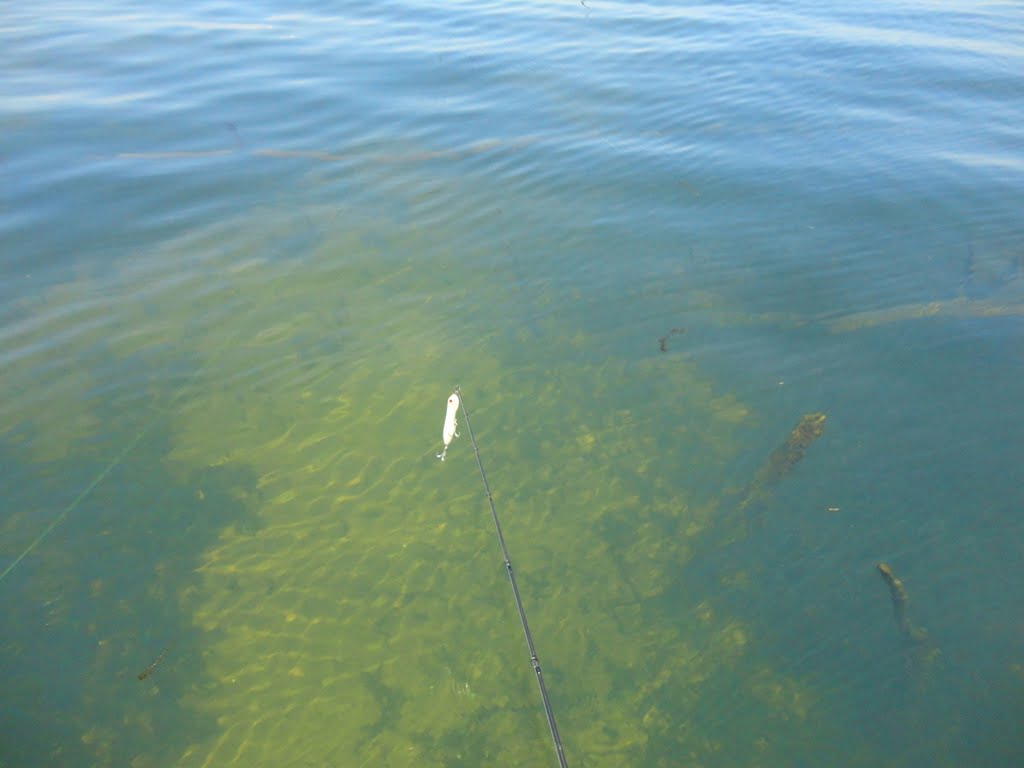 A pescaria foi no visual em pontos muito rasos e cheios de estruturas com pauleiras e algas. Muitas vezes víamos os peixes, alguns muito grandes, jogávamos jig e e outras iscas em cima e mesmo assim eles refugavam.