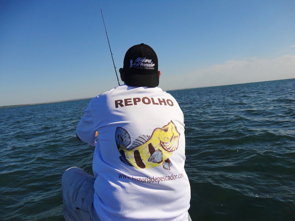 O Repolho usou o presente que lhe dei, camiseta e boné História de Pescador!