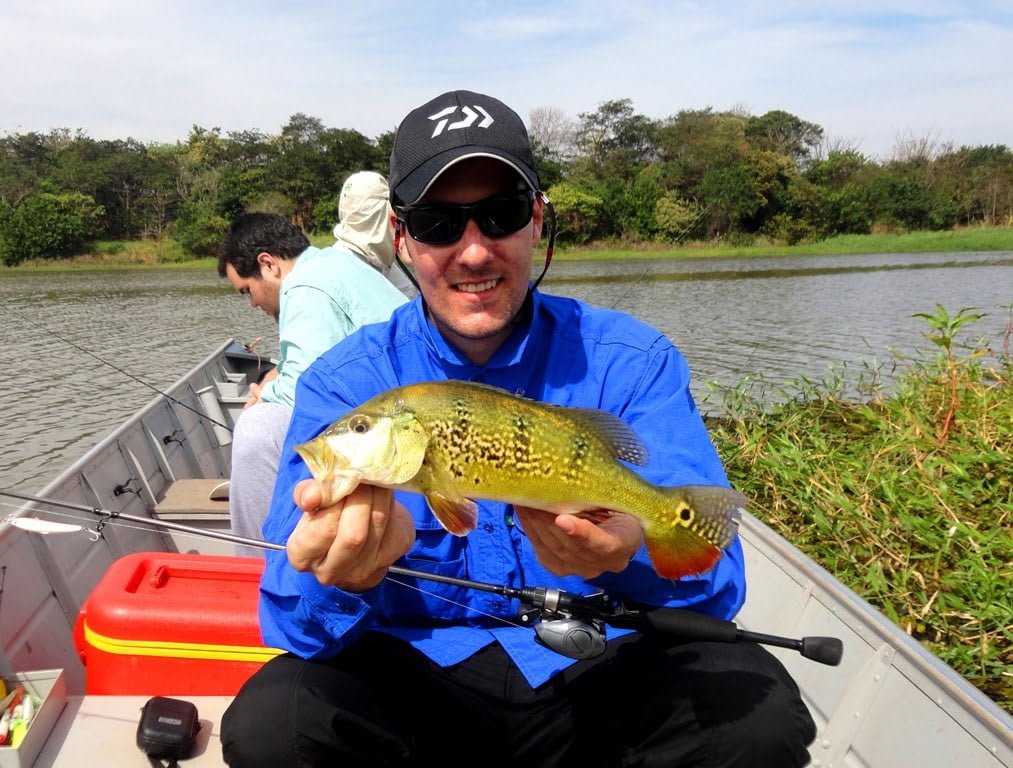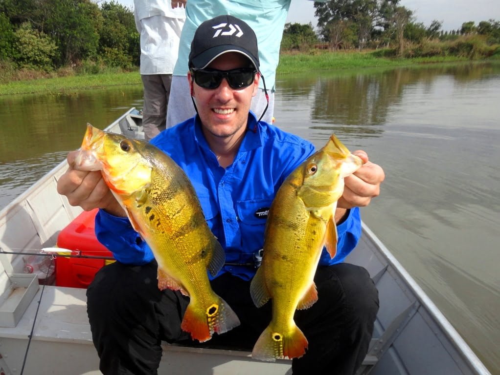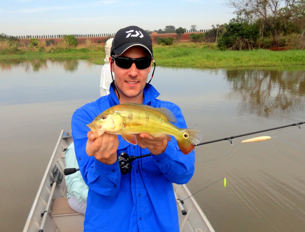 Os pontos ficam na represa nos Rios Tibagi e Congonhas, pescamos tanto de um lado da ponte como do outro. A pescaria estava difícil, pouca ação na superfície, ação na meia-água e meu irmão estava pegando vários com bóia de arremesso e camarão. Após as 11h os peixes começaram a aparecer mais, alguns dublês e tripês, até o final do dia contabilizamos 26 tucunarés capturados, dentre esses, muitos de bom tamanho, uma ótima pescaria para a região.
