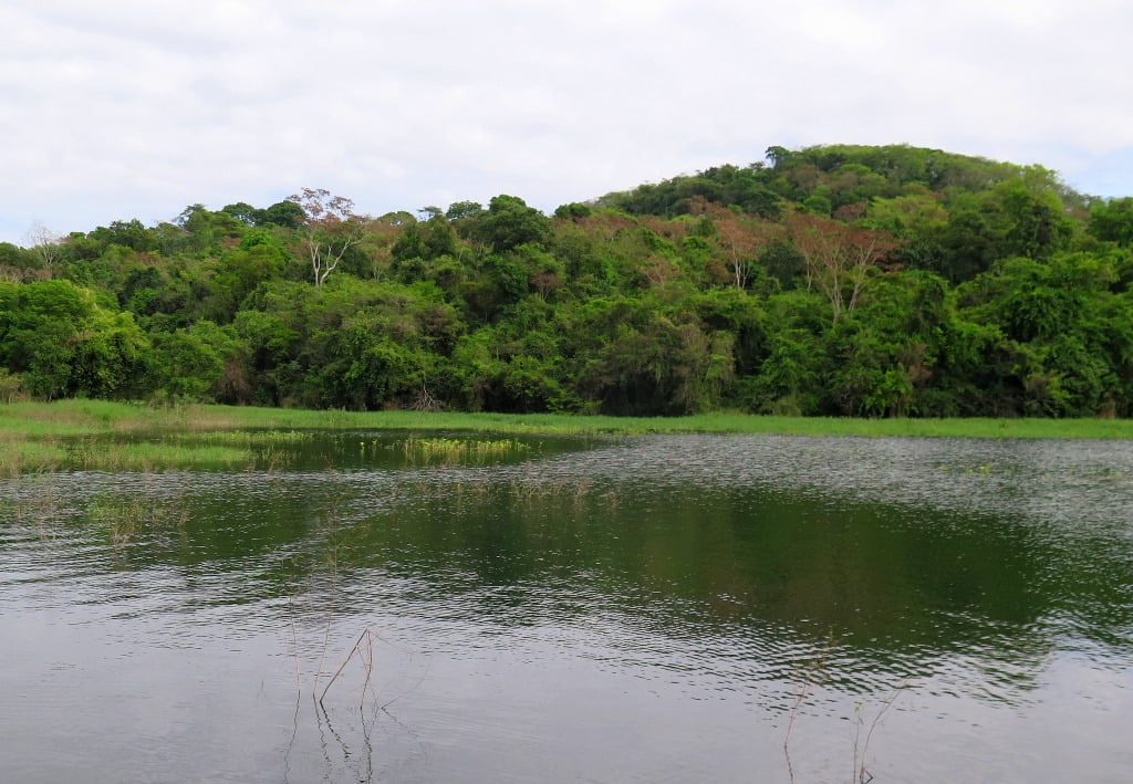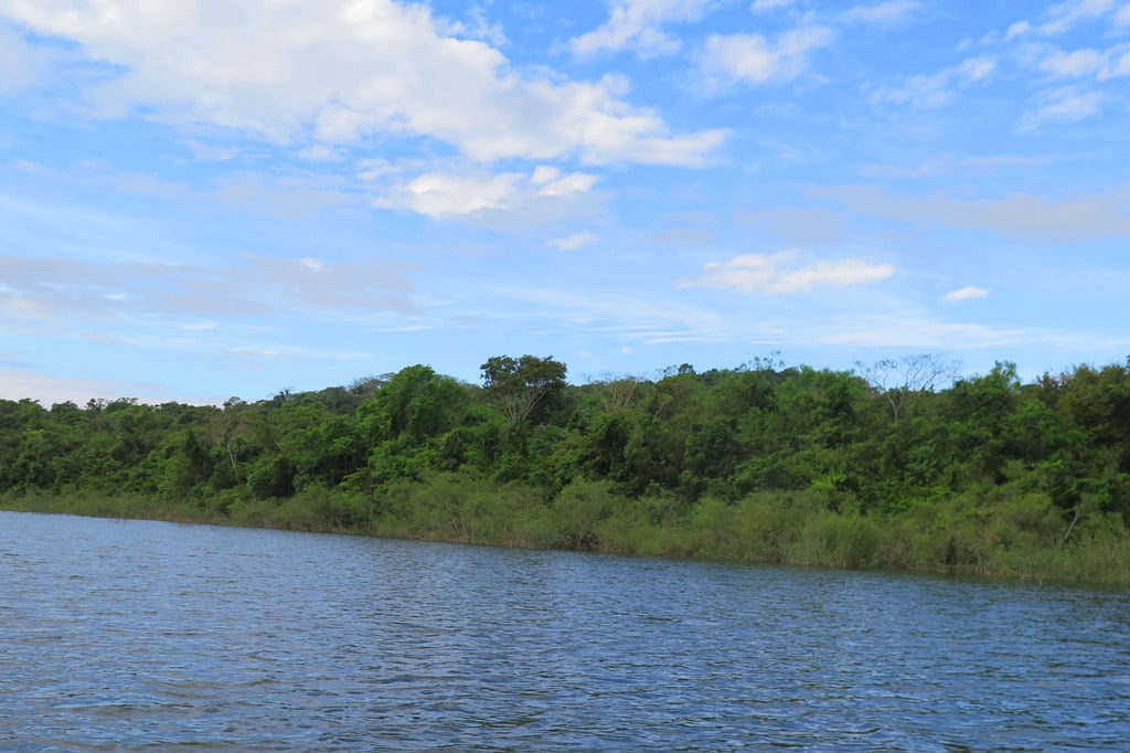 Com a represa cheia, muitos pontos estão alagados, isso requer maior habilidade do pescador em atrair o tucunaré que está dentro vegetação inundada: