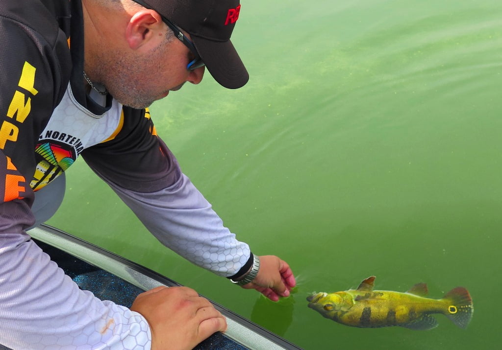 Como toda matriz, o grande tucunaré, assim como todos do dia, foi solto: