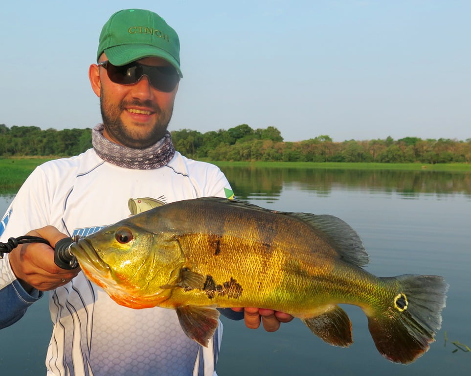O peixe estava manhoso, talvez pela água cristalina em um dia sem vento, ou até pelas fortes chuvas dos dias anteriores. Porém logo nos primeiros arremessos recebi duas pancadas grandes na superfície, um dos peixes abriu a garatéia e escapou, era o meu troféu do dia.