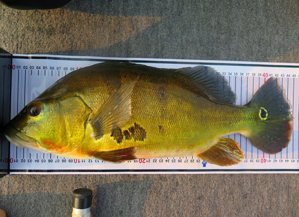 E o troféu do dia, tucunaré com exatos 43cm. Belo peixe para encerrar o dia com chave de ouro!