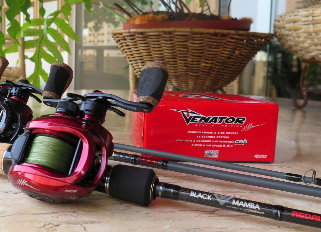 Estreiei o novo lançamento da Marine Sports, a carretilha Venator Special Edition by Johnny Hoffmann, que fez um belo conjunto com a vara Black Mamba 14lb da Redai.