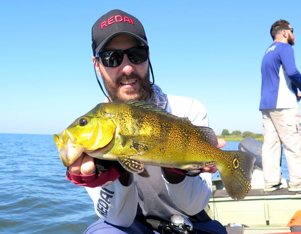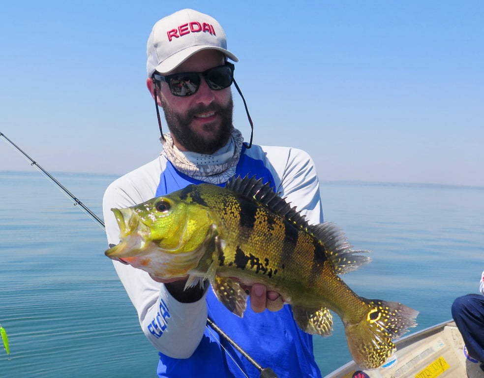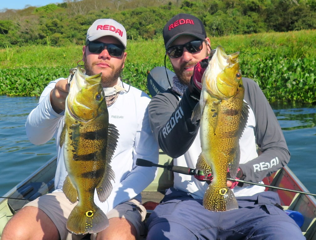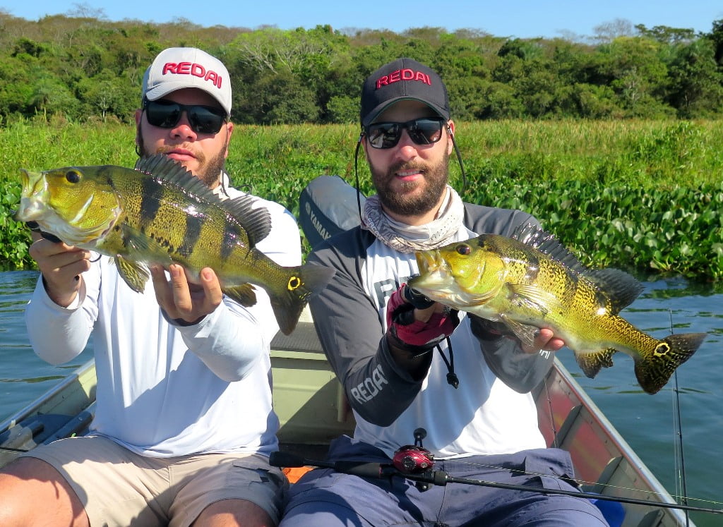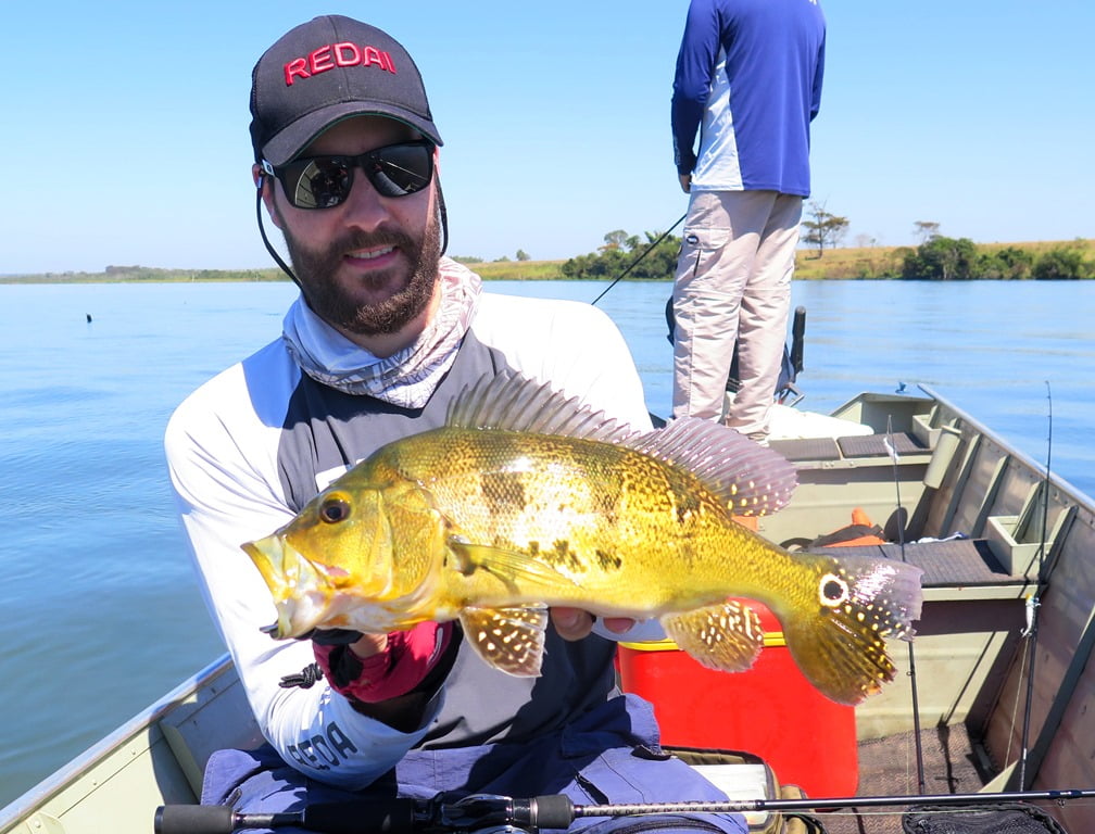 Foi melhor, porém não estava fácil, registrei poucas imagens. Capturamos cerca de 25 peixes. Destaque para esse belo dublê de tucunarés amarelos: